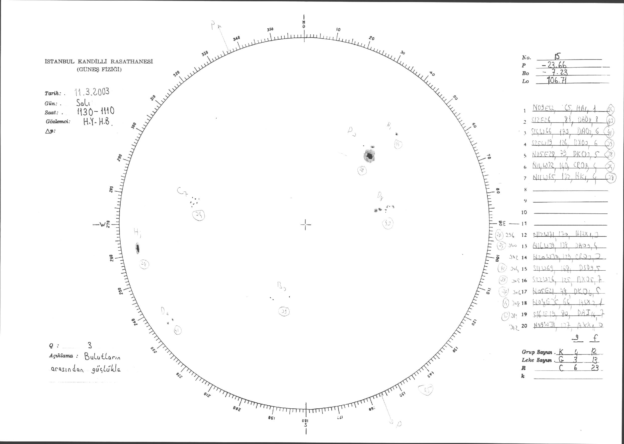 Güneş Lekesi Çizimi - 11.03.2003