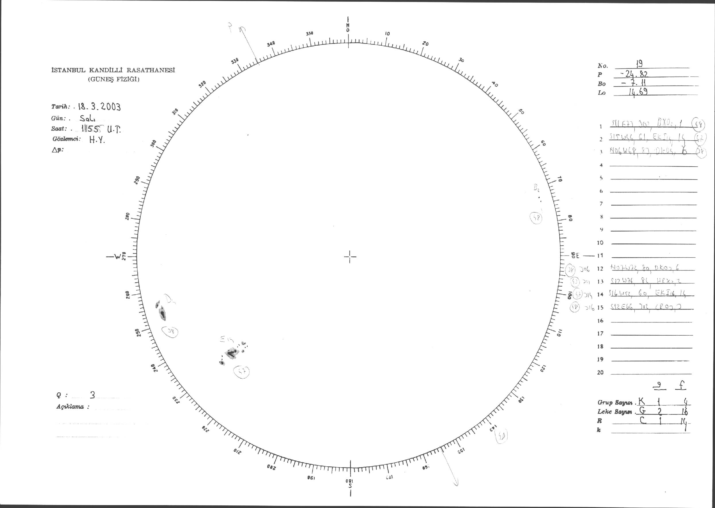 Güneş Lekesi Çizimi - 18.03.2003