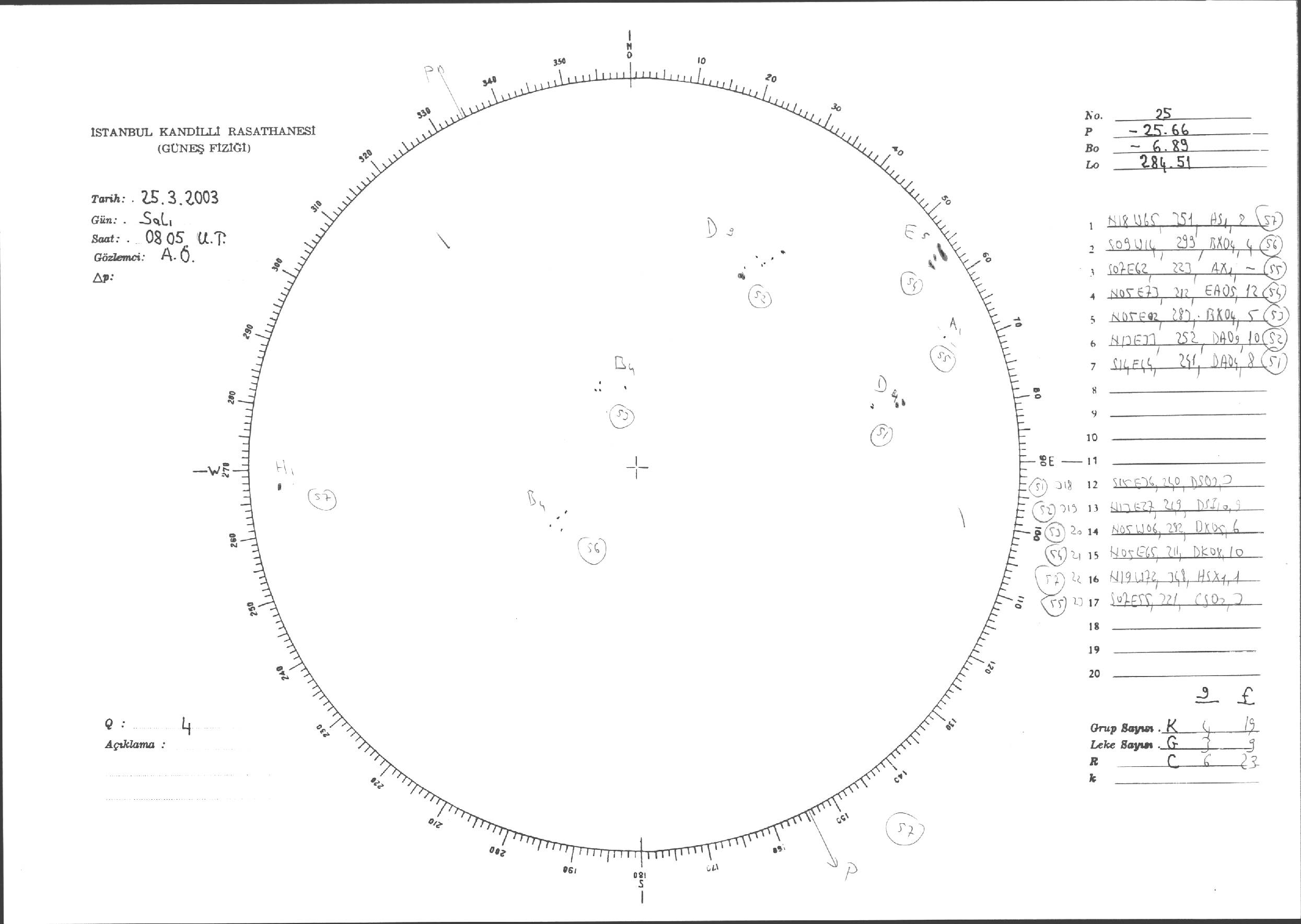 Güneş Lekesi Çizimi - 25.03.2003