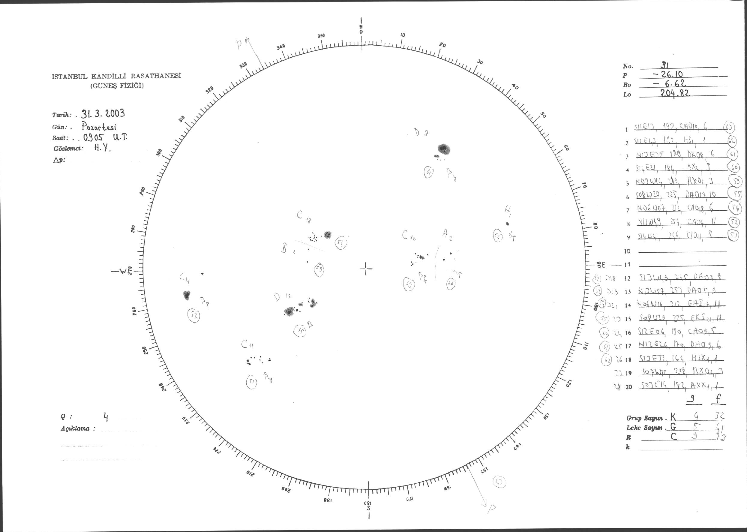 Güneş Lekesi Çizimi - 31.03.2003