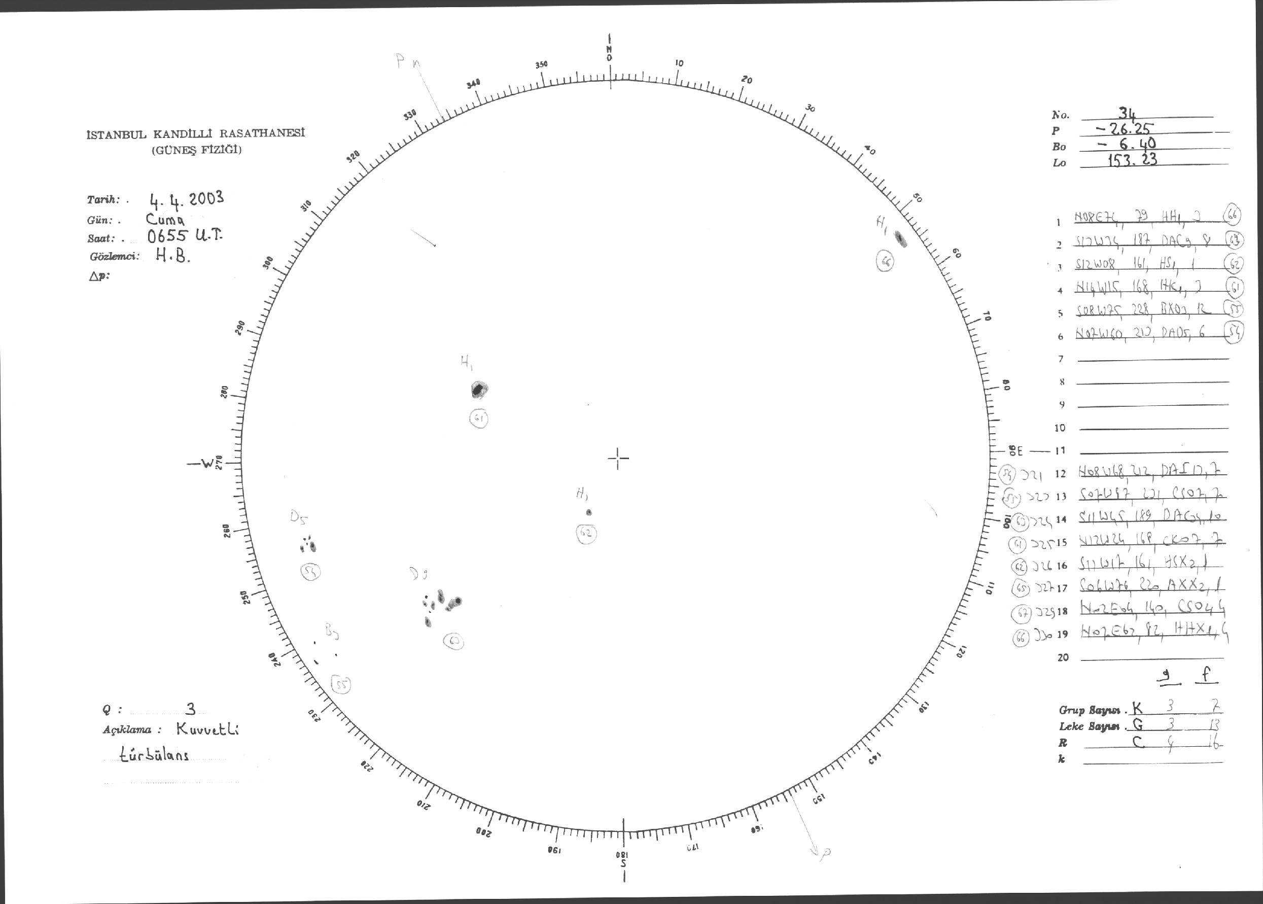 Güneş Lekesi Çizimi - 04.04.2003