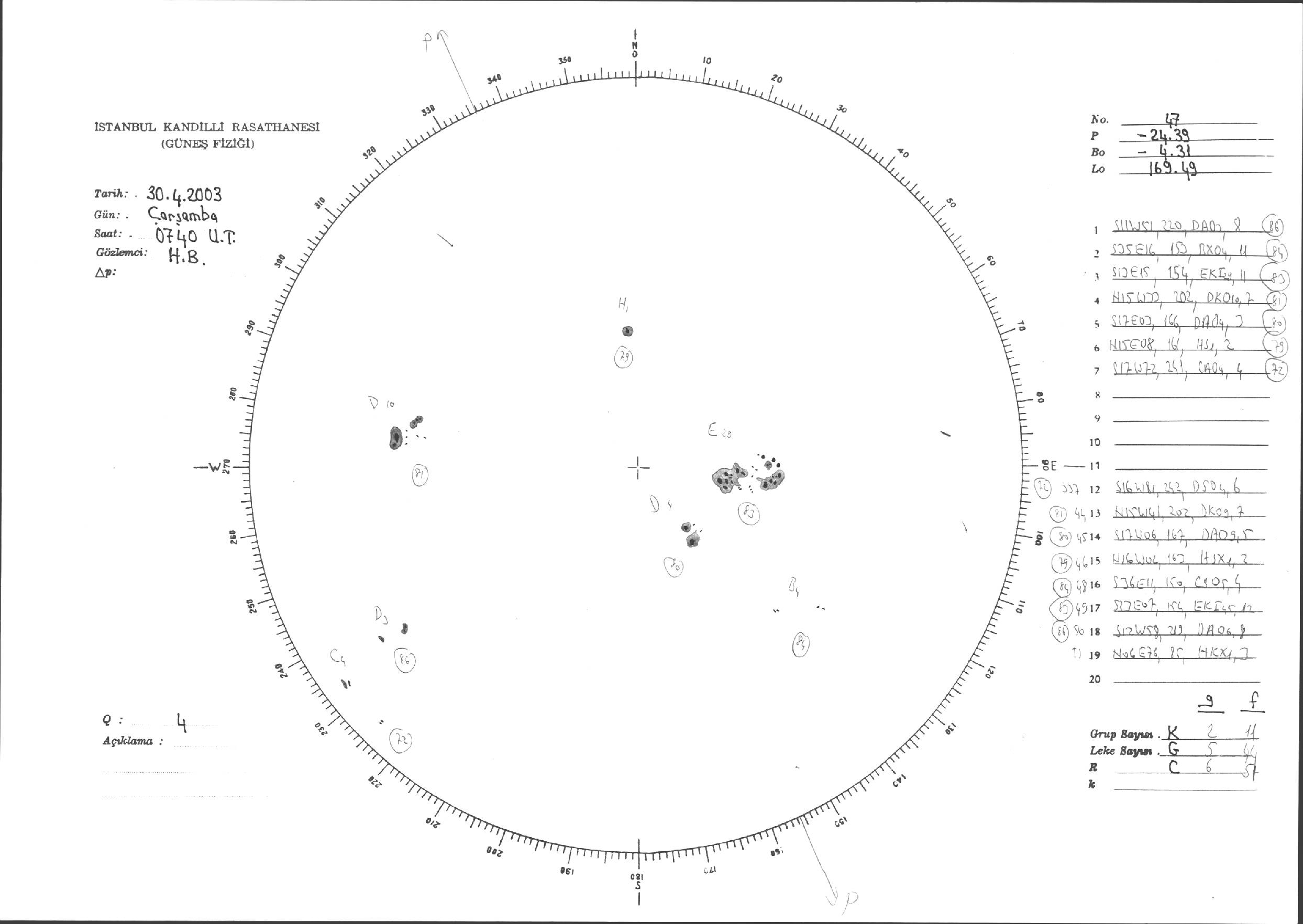 Güneş Lekesi Çizimi - 30.04.2003