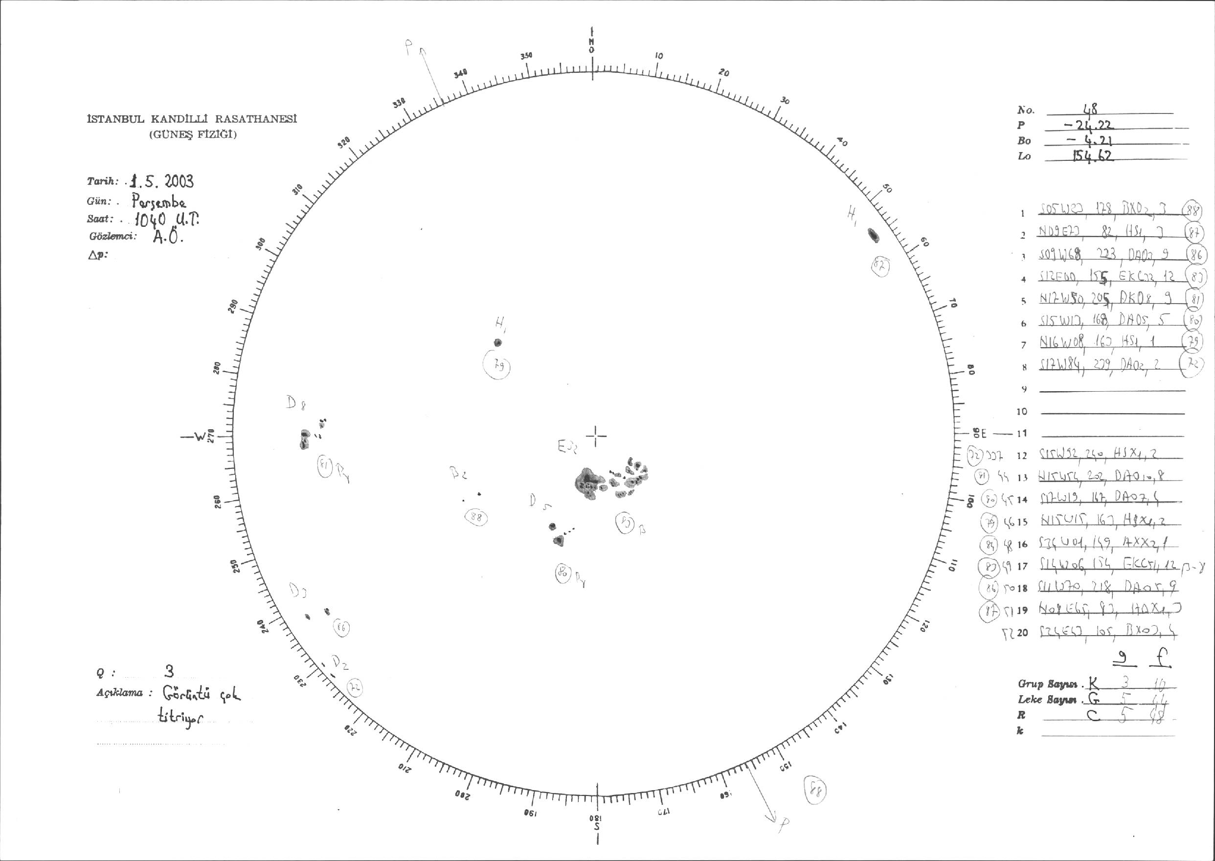 Güneş Lekesi Çizimi - 01.05.2003