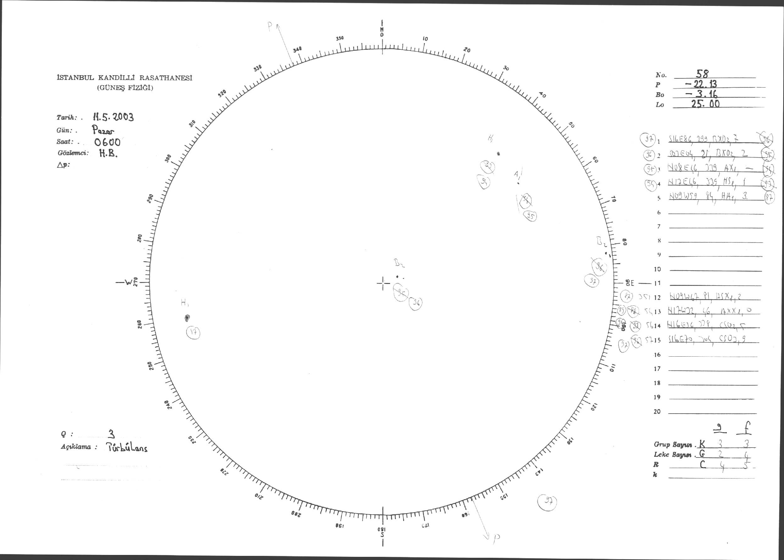 Güneş Lekesi Çizimi - 11.05.2003