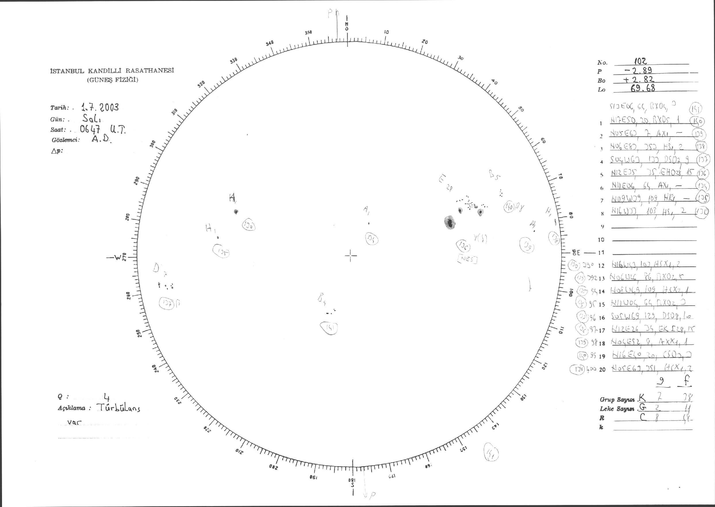 Güneş Lekesi Çizimi - 01.07.2003