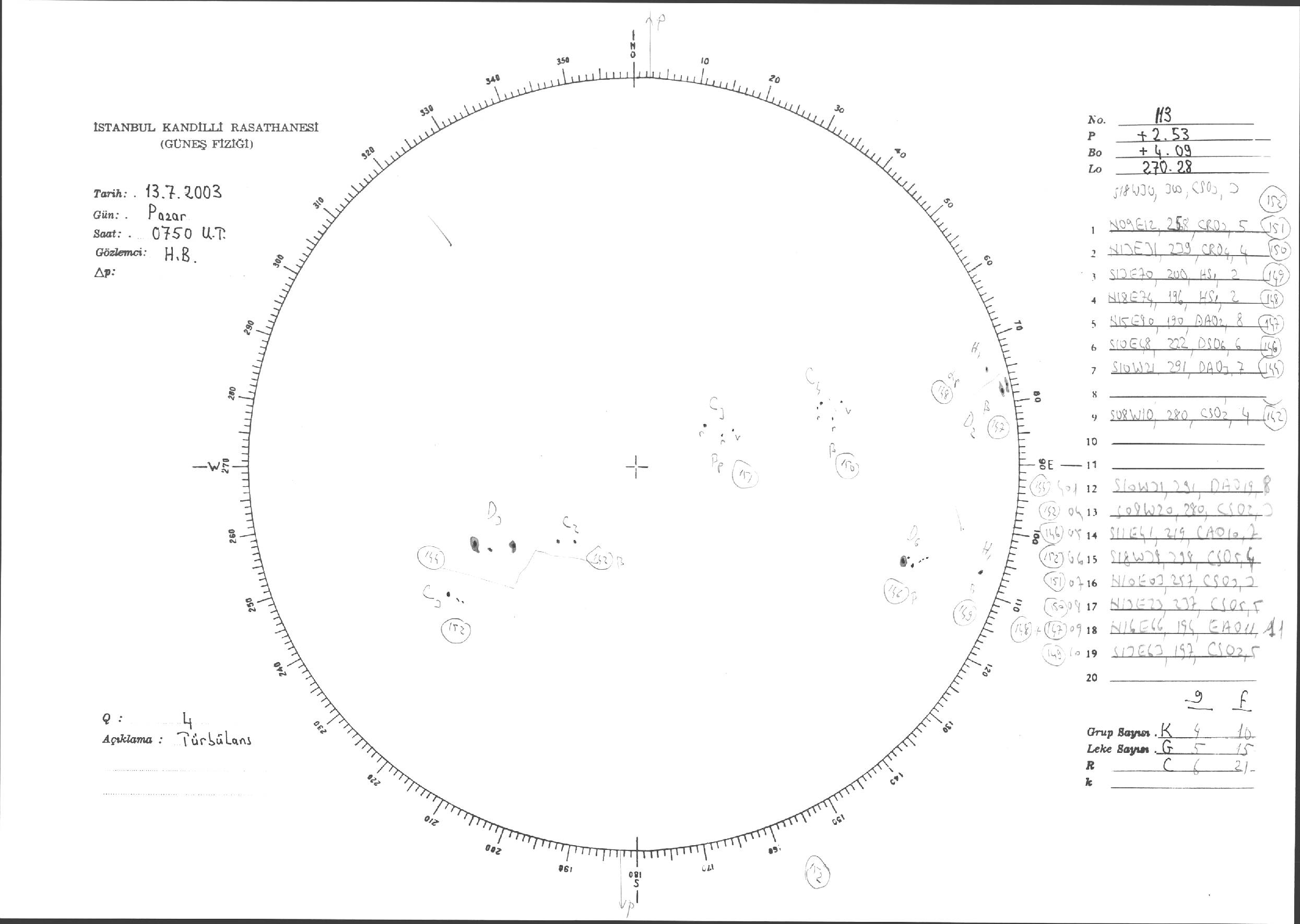 Güneş Lekesi Çizimi - 13.07.2003