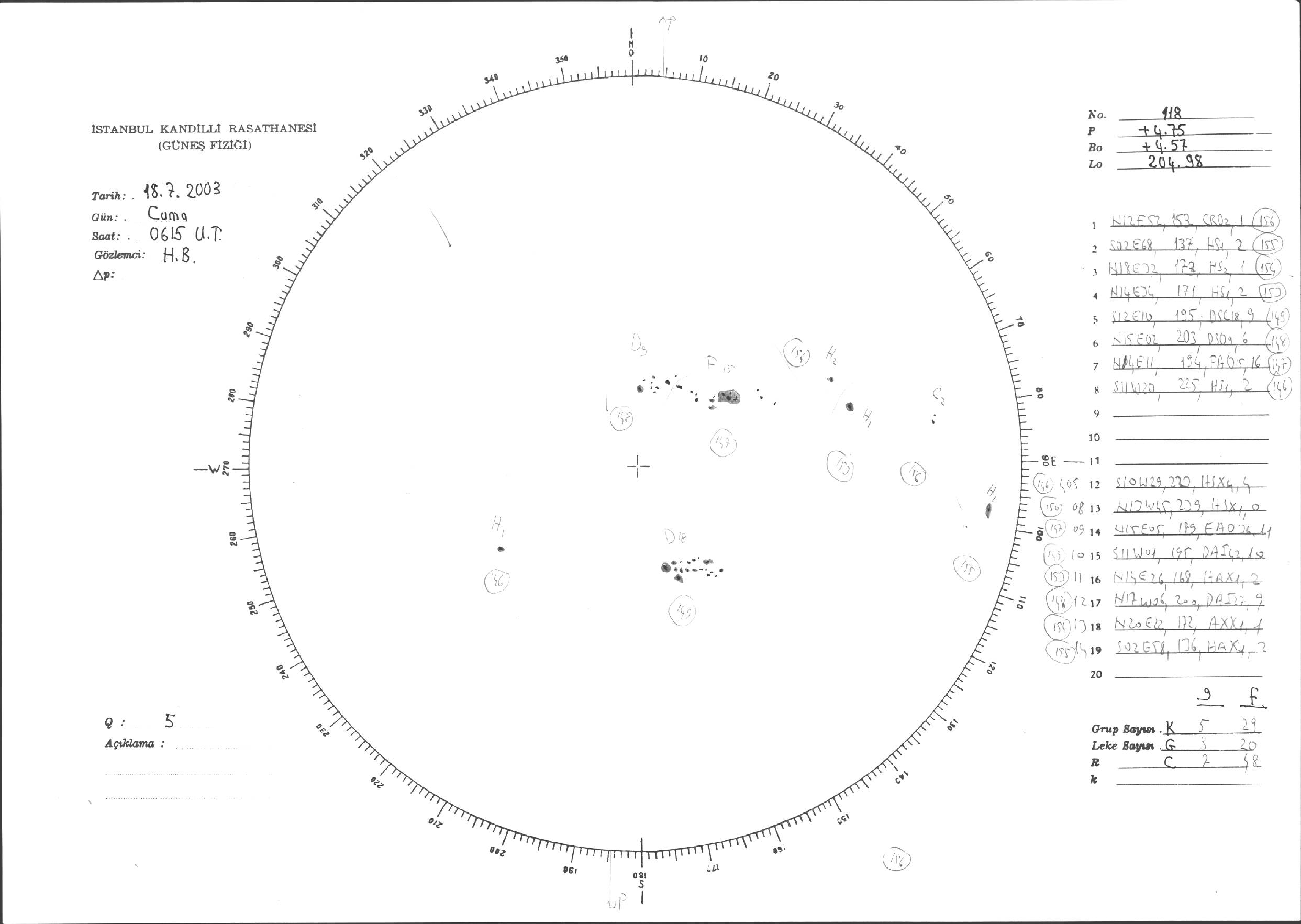 Güneş Lekesi Çizimi - 18.07.2003