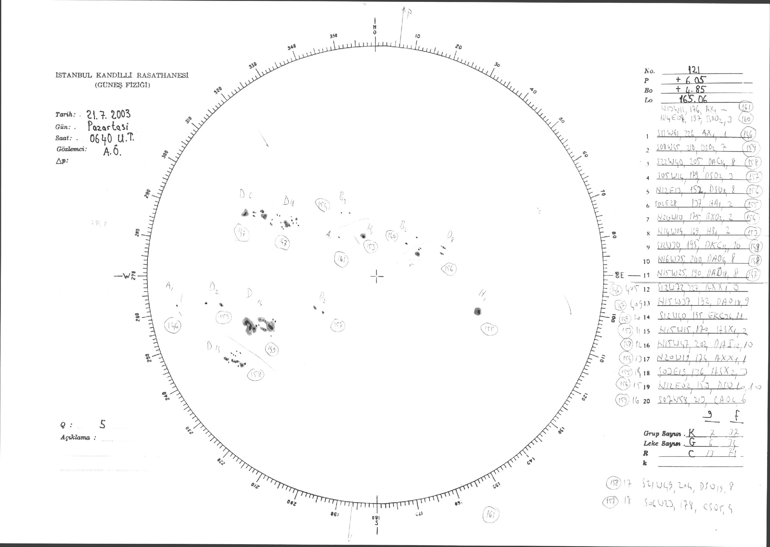 Güneş Lekesi Çizimi - 21.07.2003