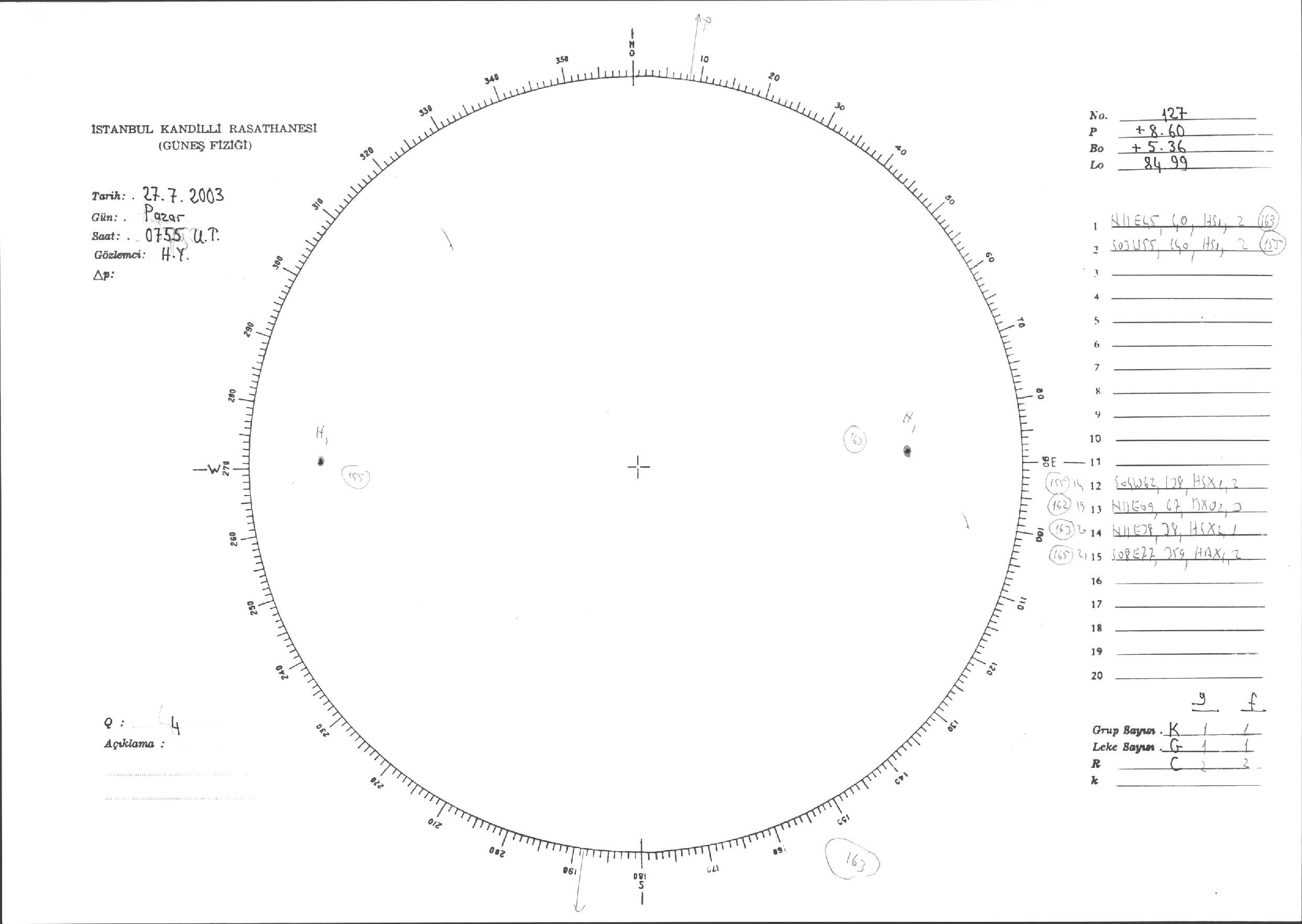 Güneş Lekesi Çizimi - 27.07.2003
