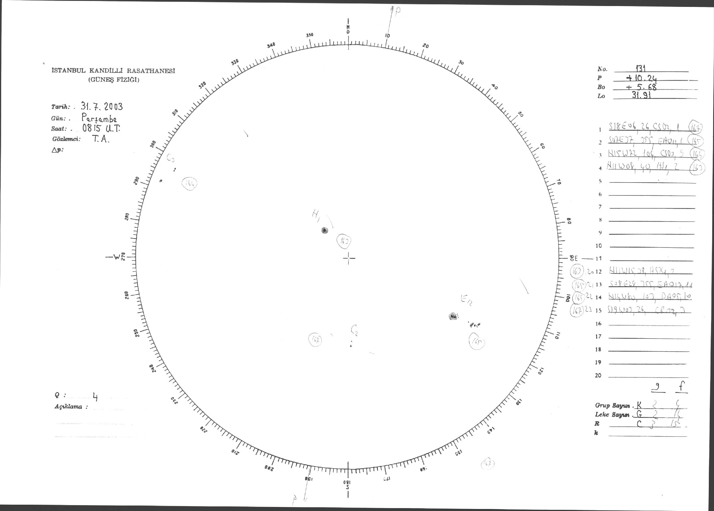 Güneş Lekesi Çizimi - 31.07.2003