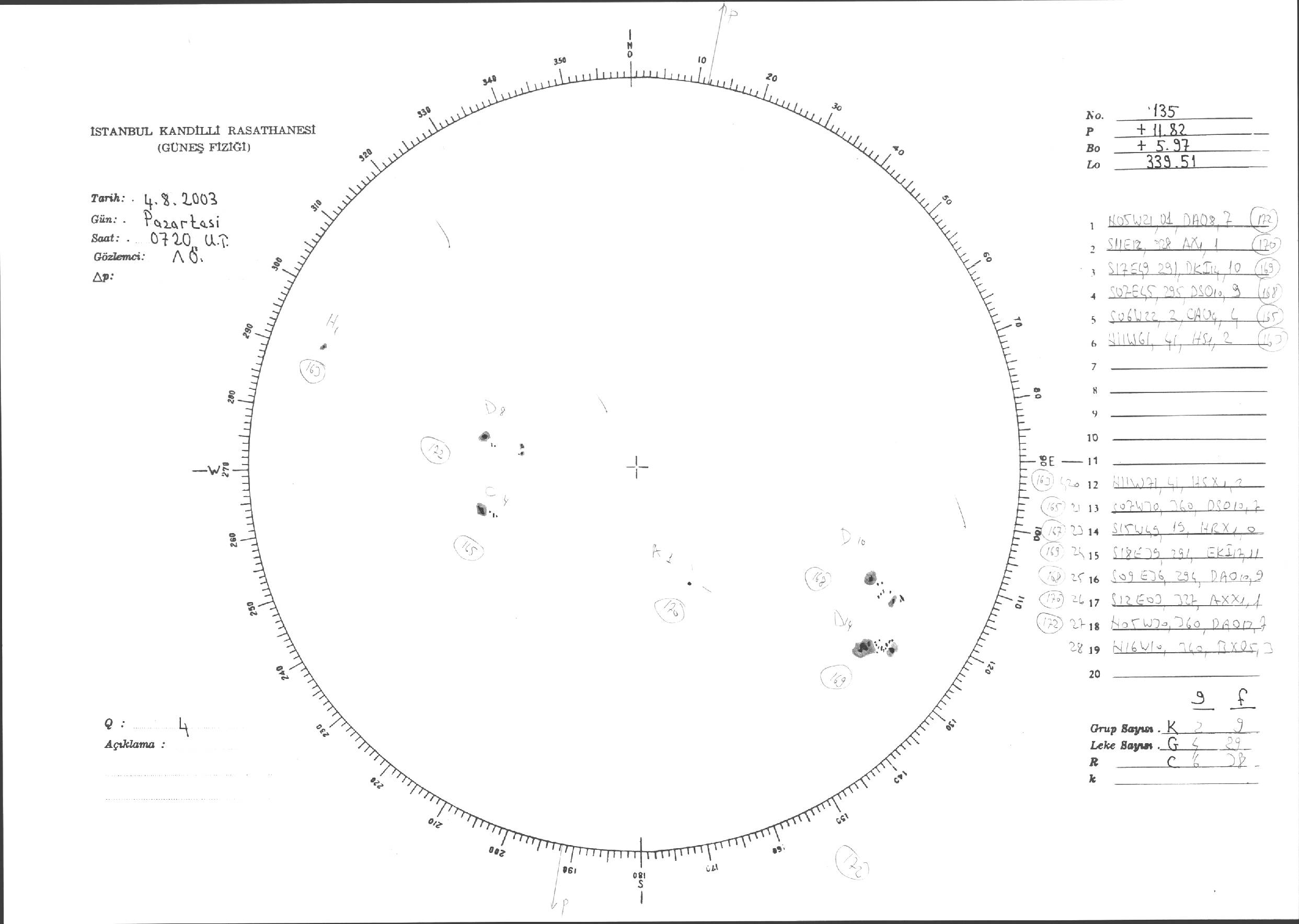 Güneş Lekesi Çizimi - 04.08.2003