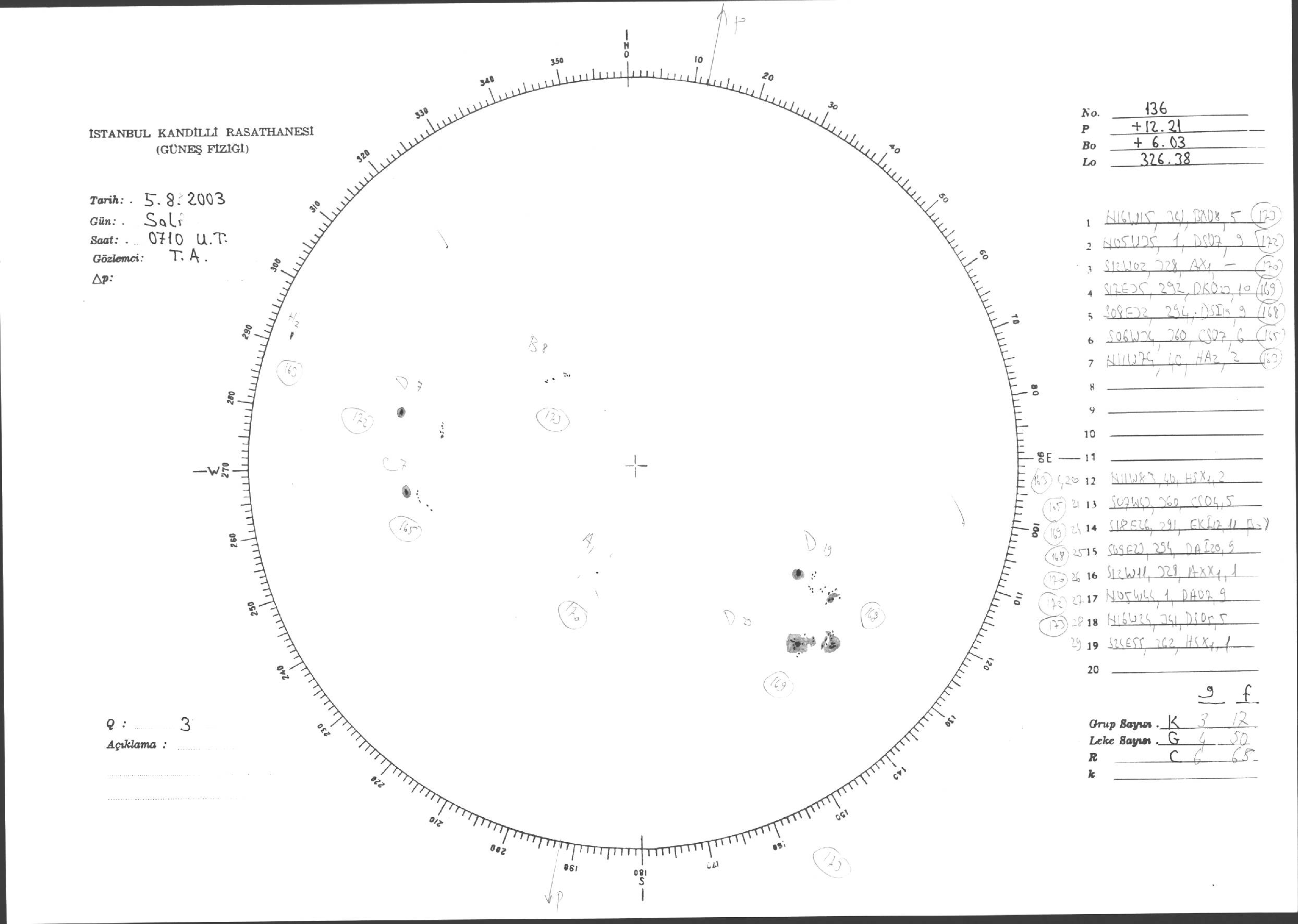 Güneş Lekesi Çizimi - 05.08.2003