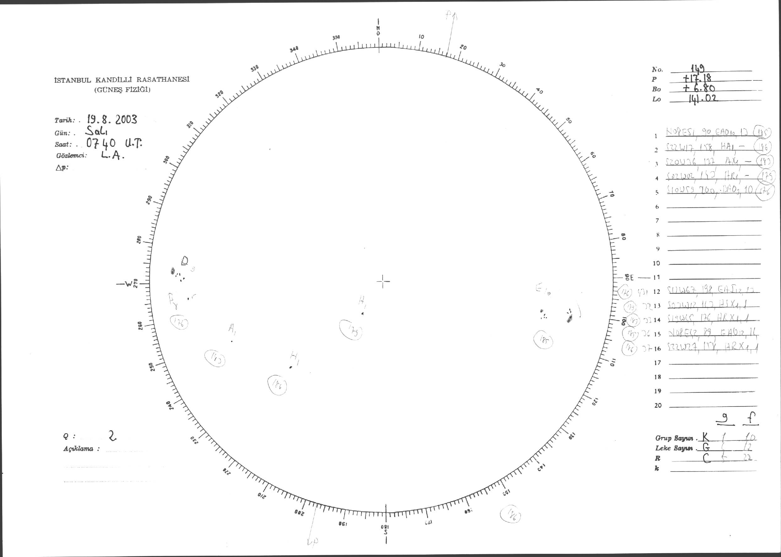 Güneş Lekesi Çizimi - 19.08.2003