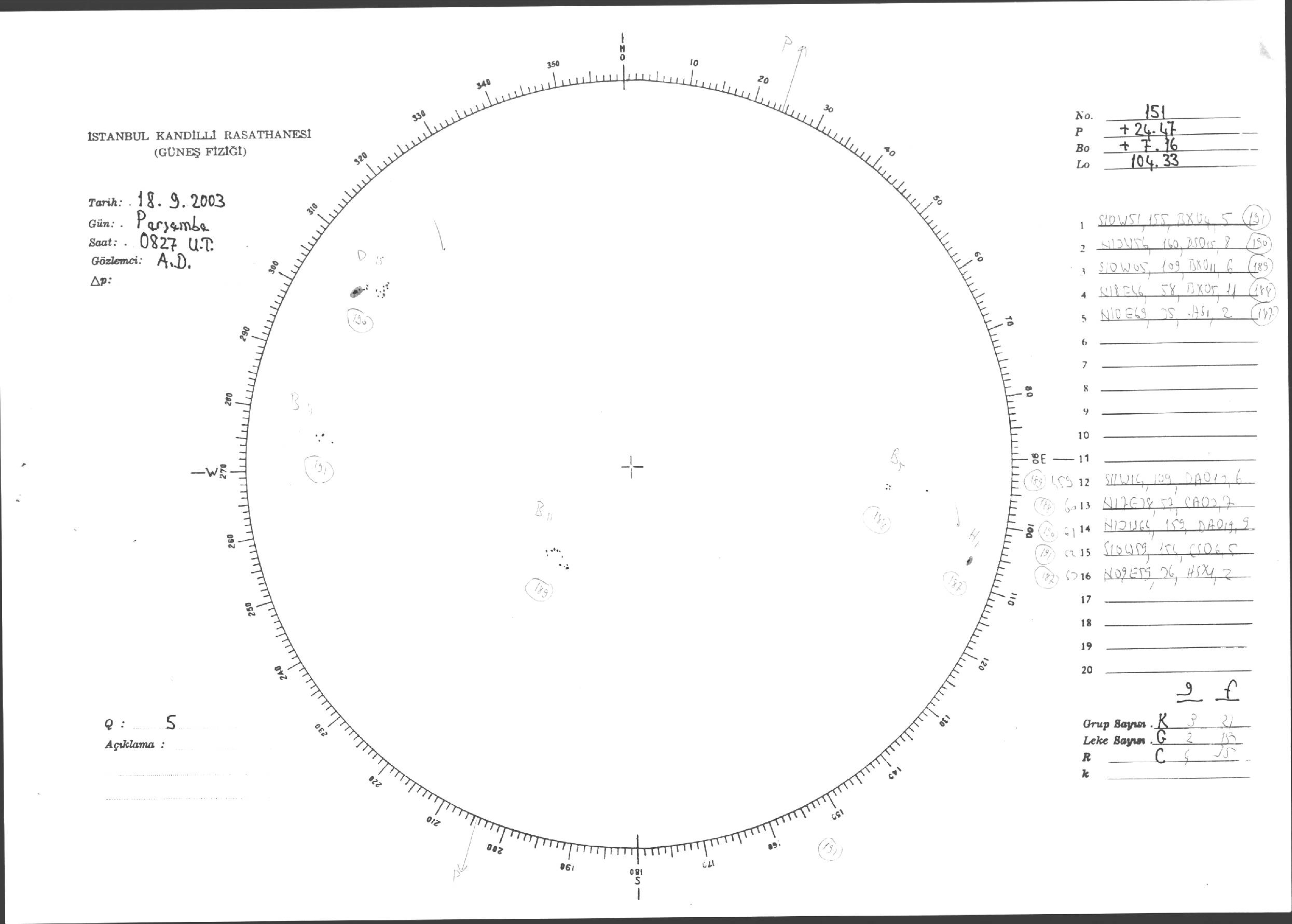 Güneş Lekesi Çizimi - 18.09.2003
