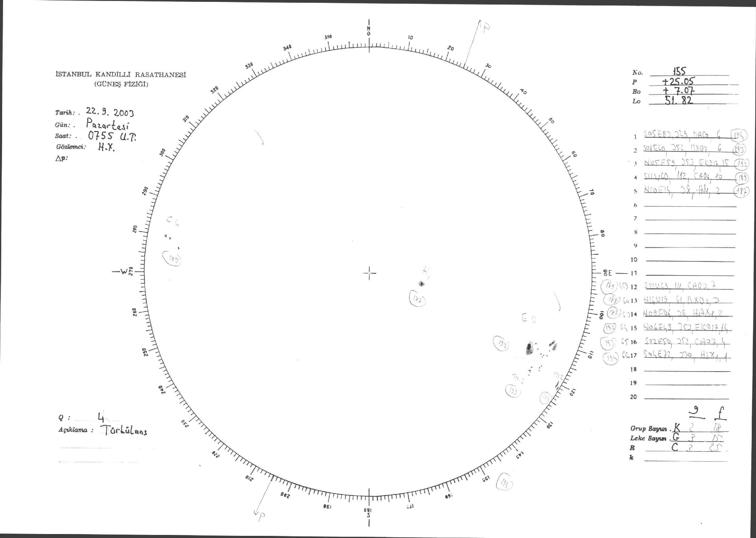 Güneş Lekesi Çizimi - 22.09.2003