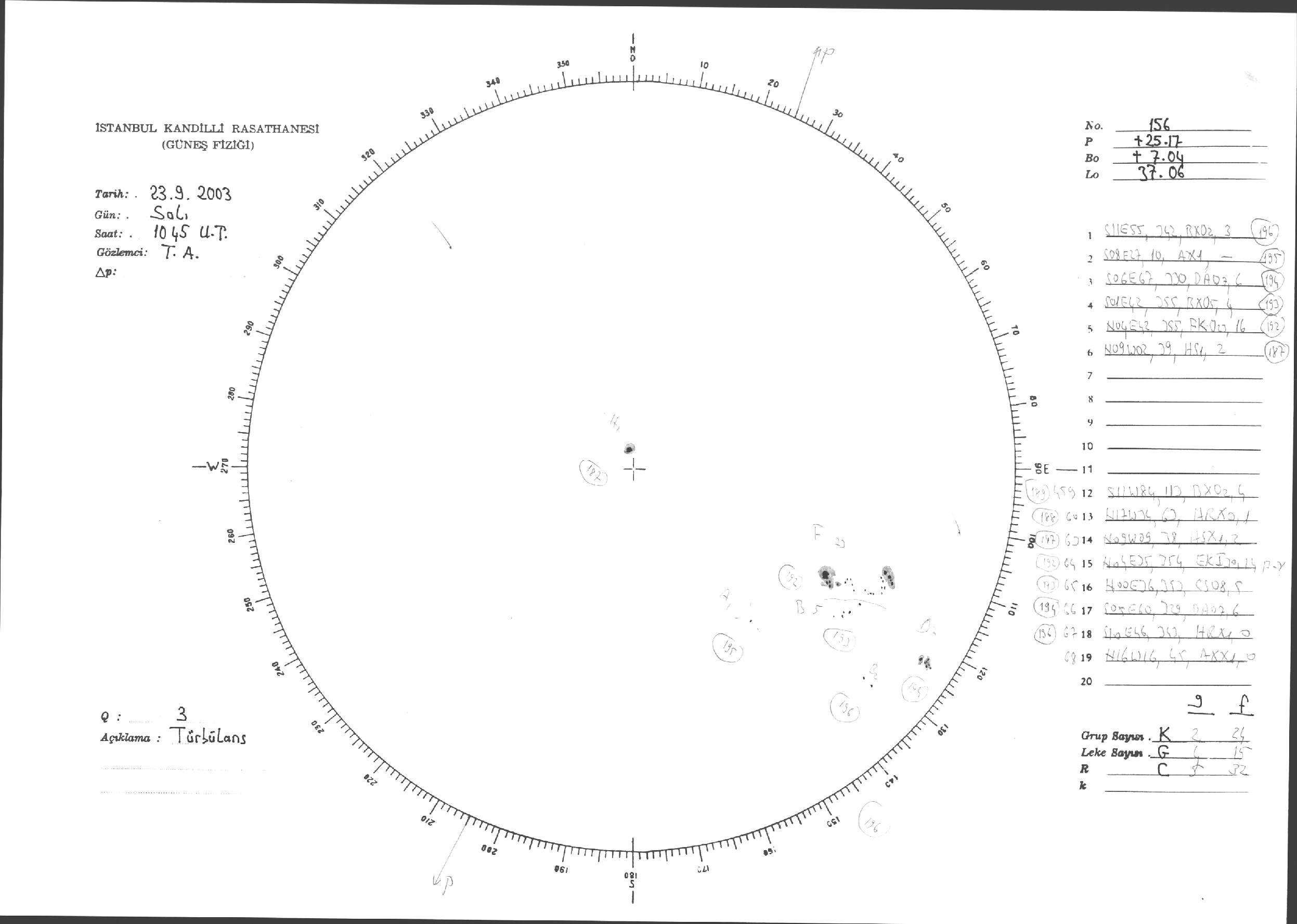Güneş Lekesi Çizimi - 23.09.2003