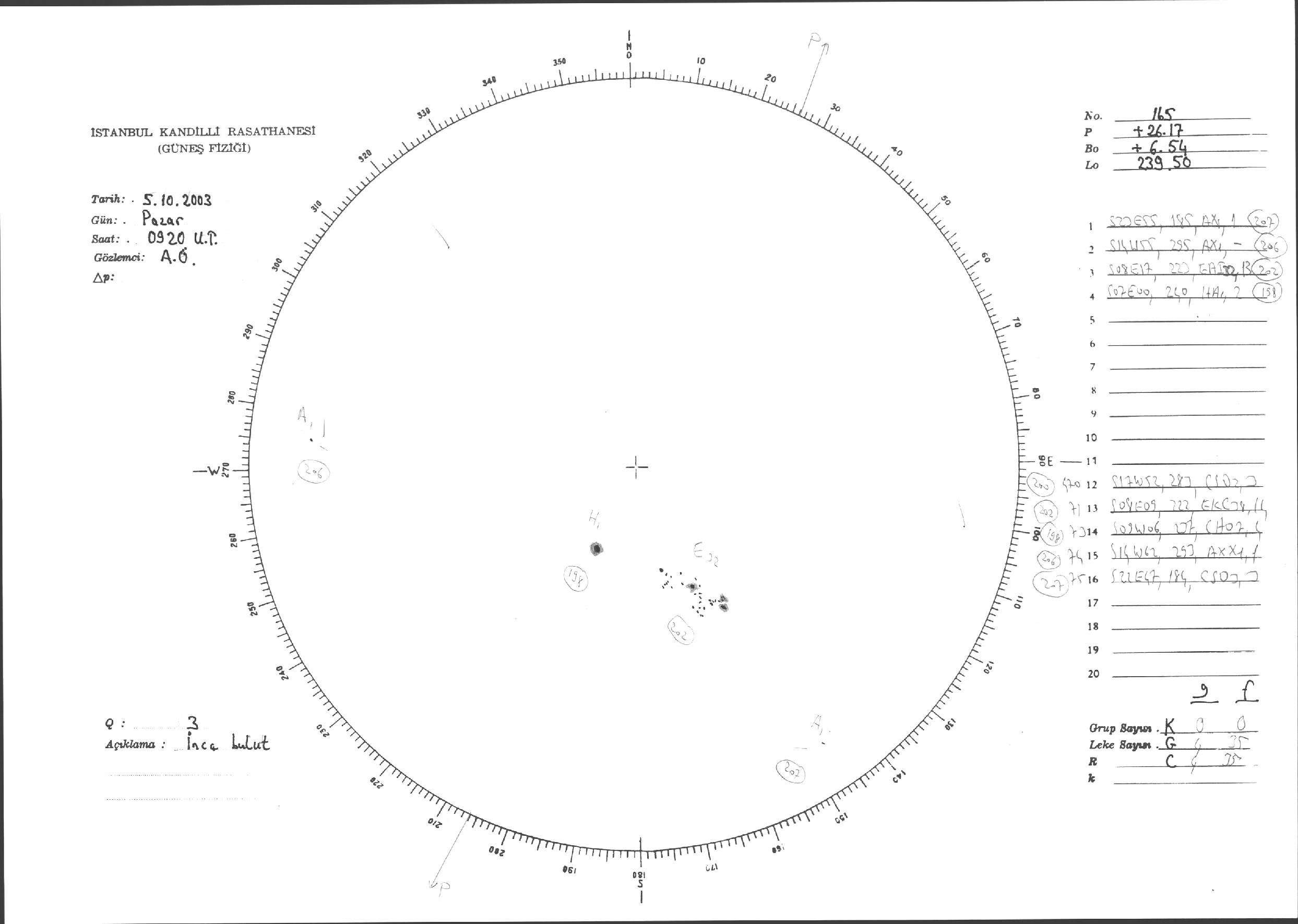 Güneş Lekesi Çizimi - 05.10.2003