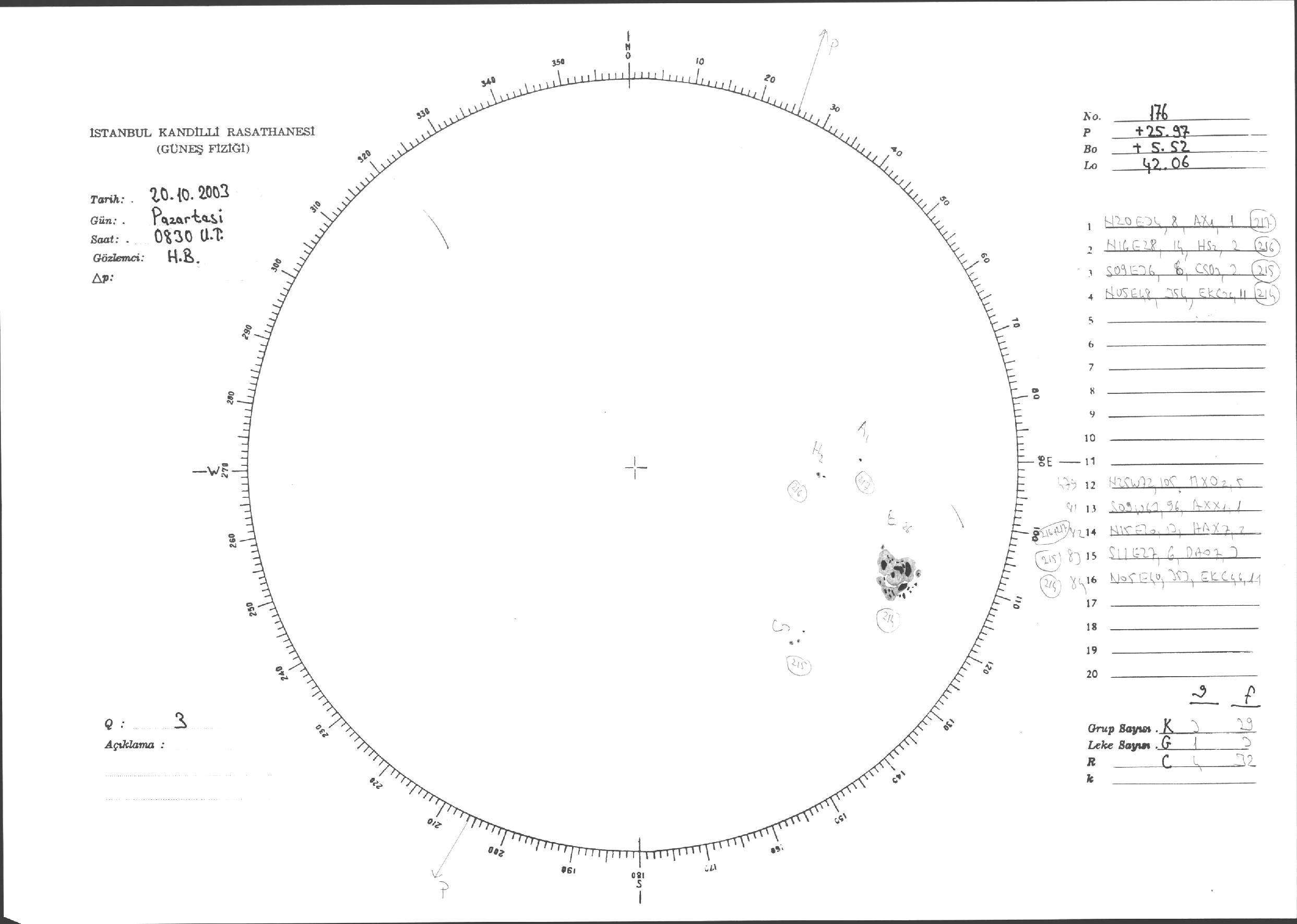Güneş Lekesi Çizimi - 20.10.2003