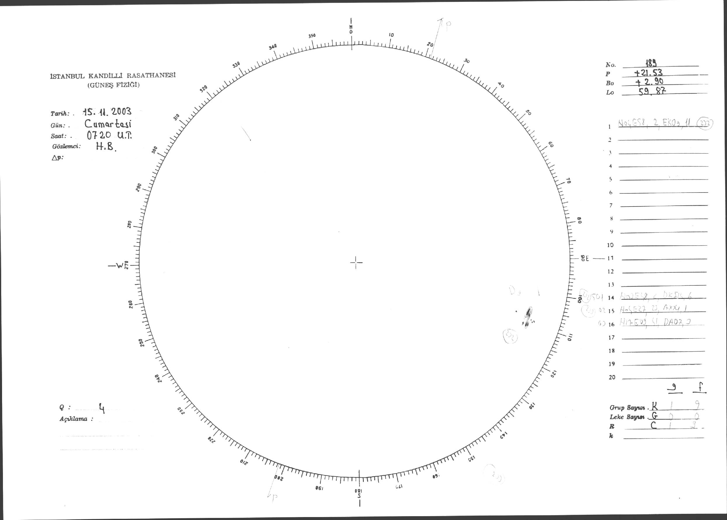 Güneş Lekesi Çizimi - 15.11.2003