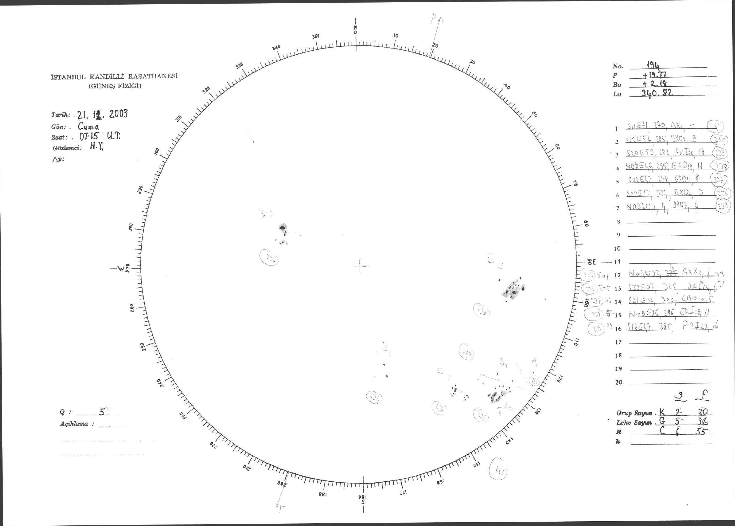 Güneş Lekesi Çizimi - 21.11.2003