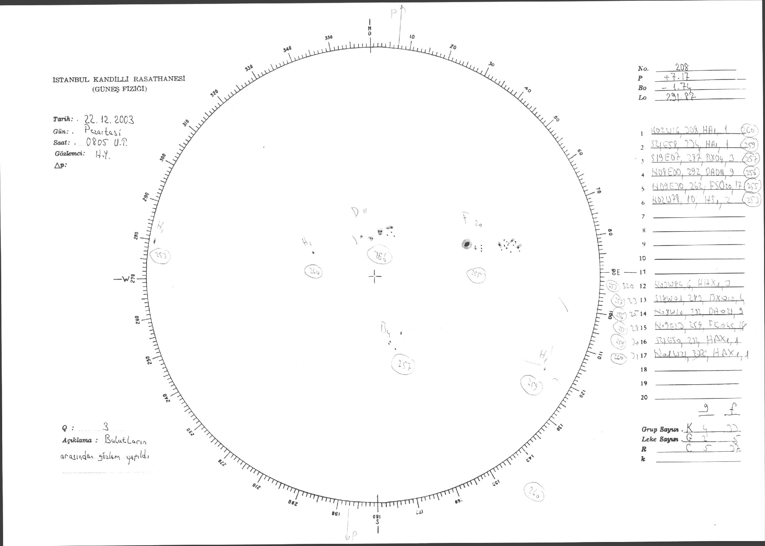 Güneş Lekesi Çizimi - 22.12.2003