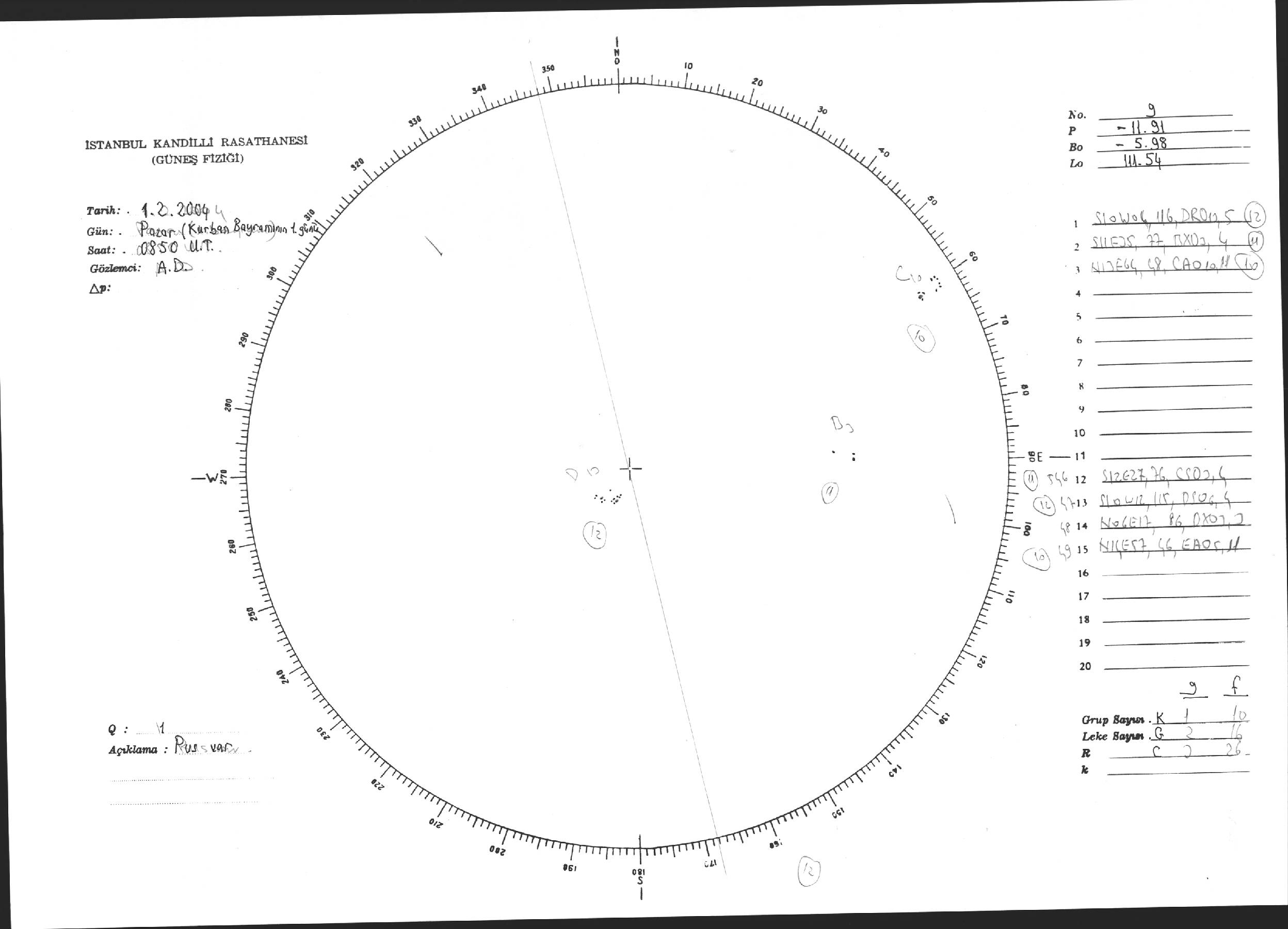 Güneş Lekesi Çizimi - 01.02.2004