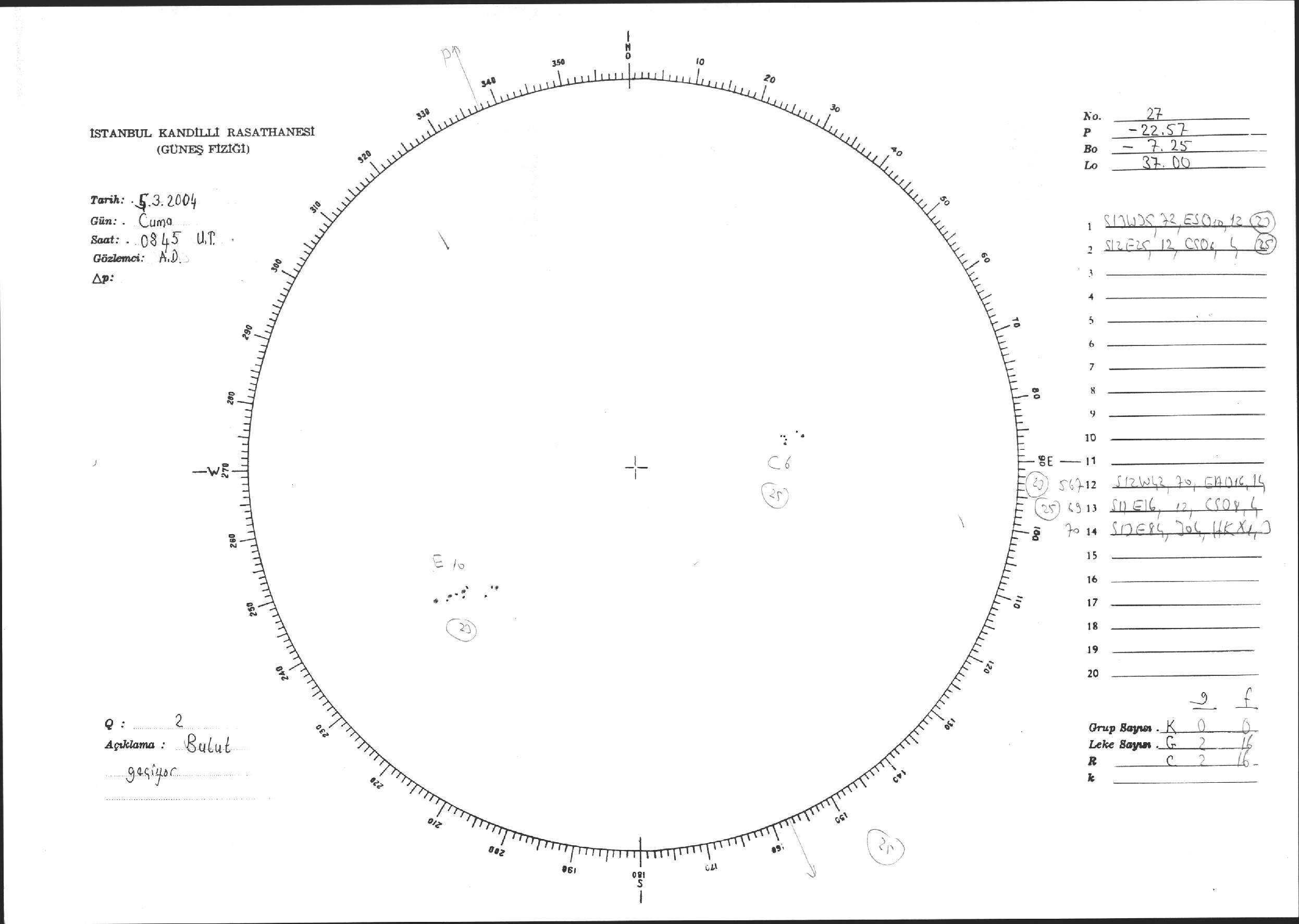 Güneş Lekesi Çizimi - 05.03.2004
