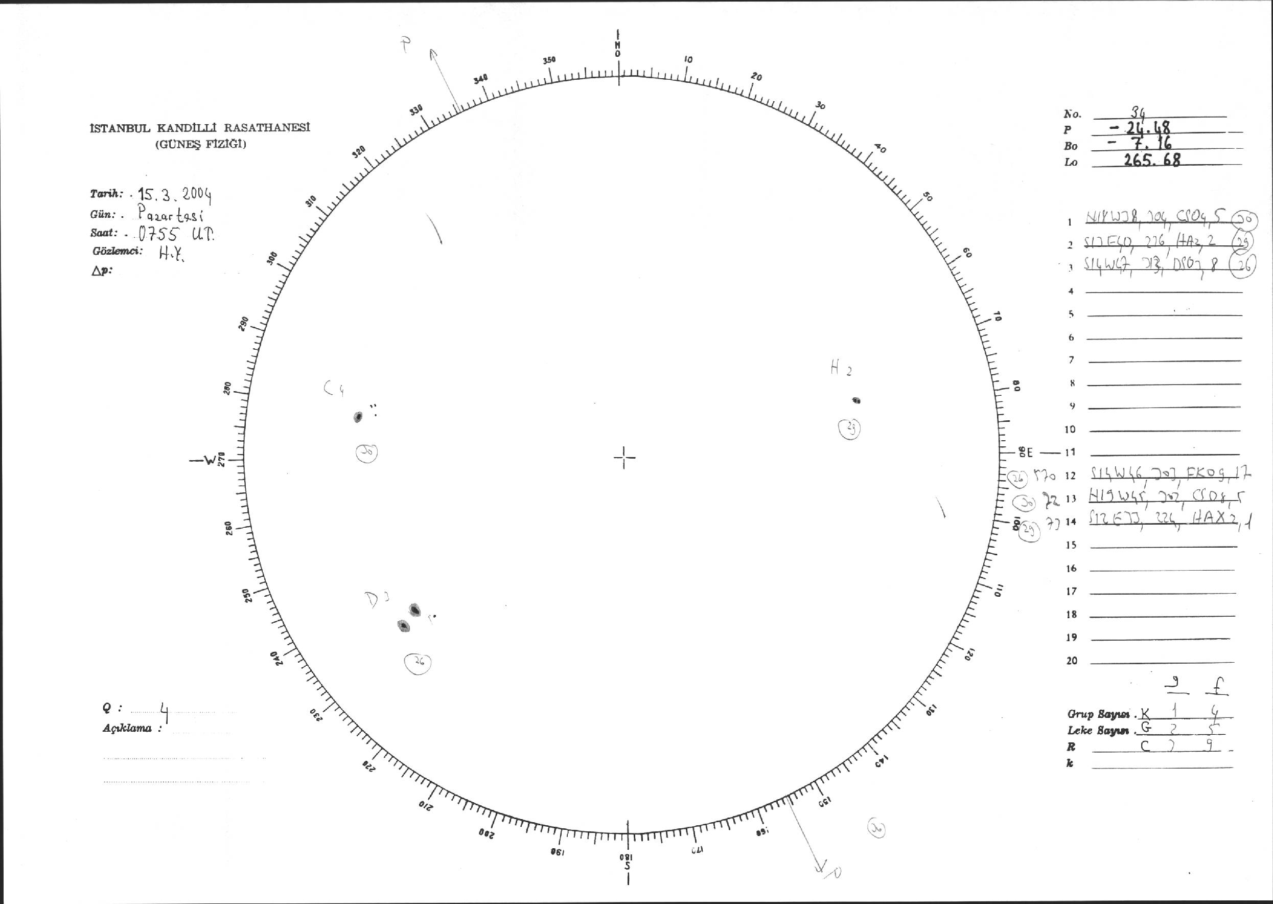 Güneş Lekesi Çizimi - 15.03.2004