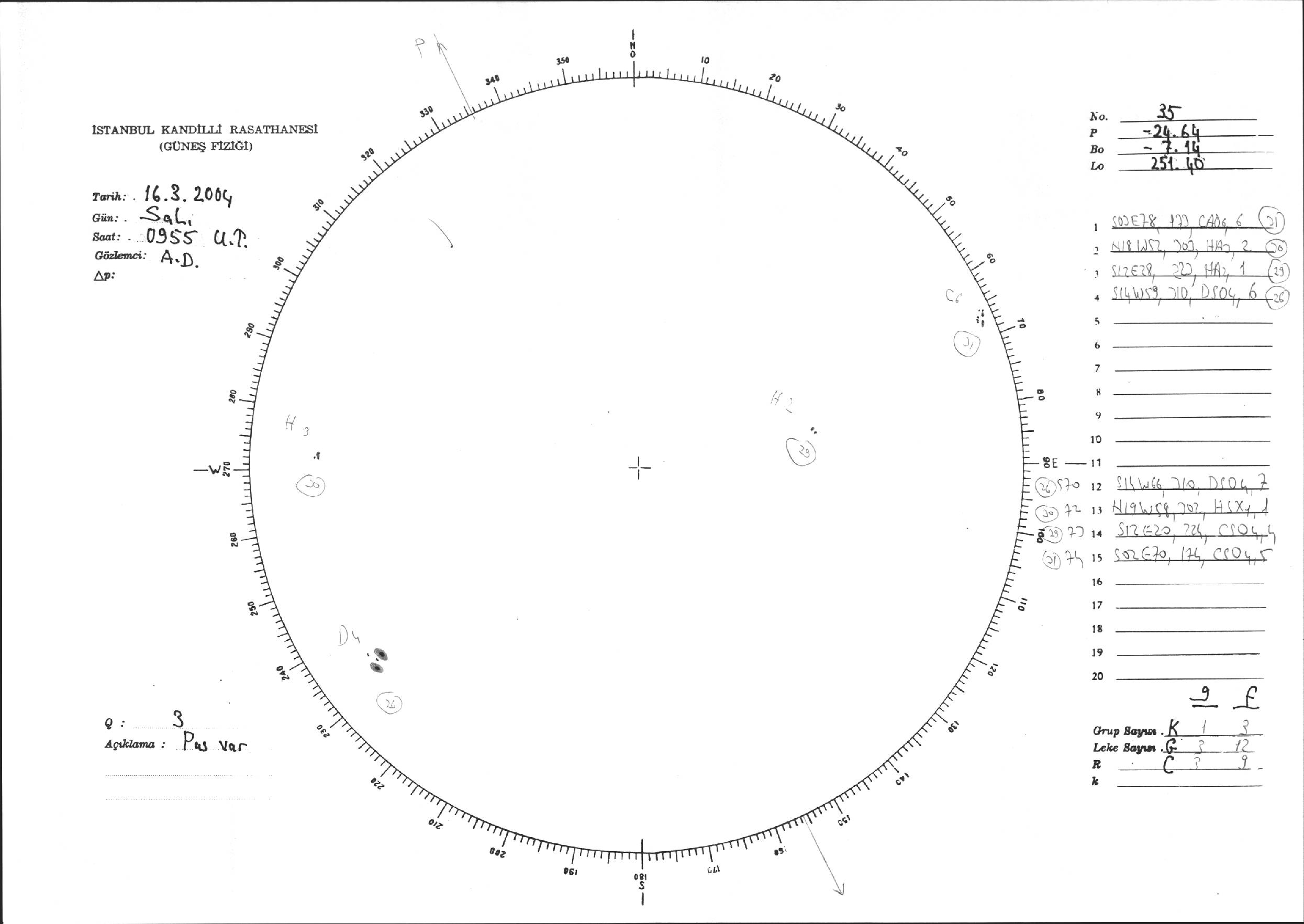 Güneş Lekesi Çizimi - 16.03.2004