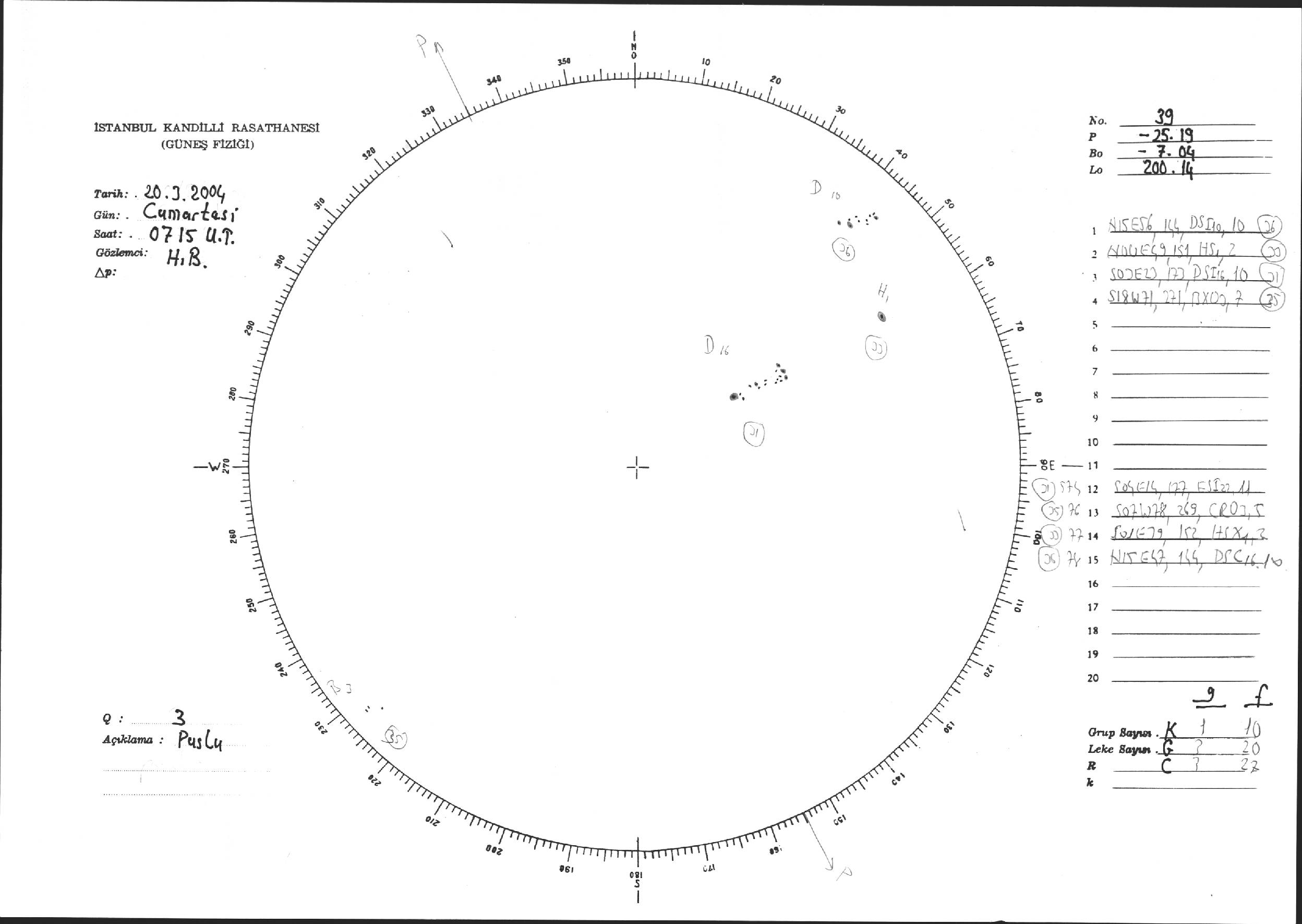 Güneş Lekesi Çizimi - 20.03.2004