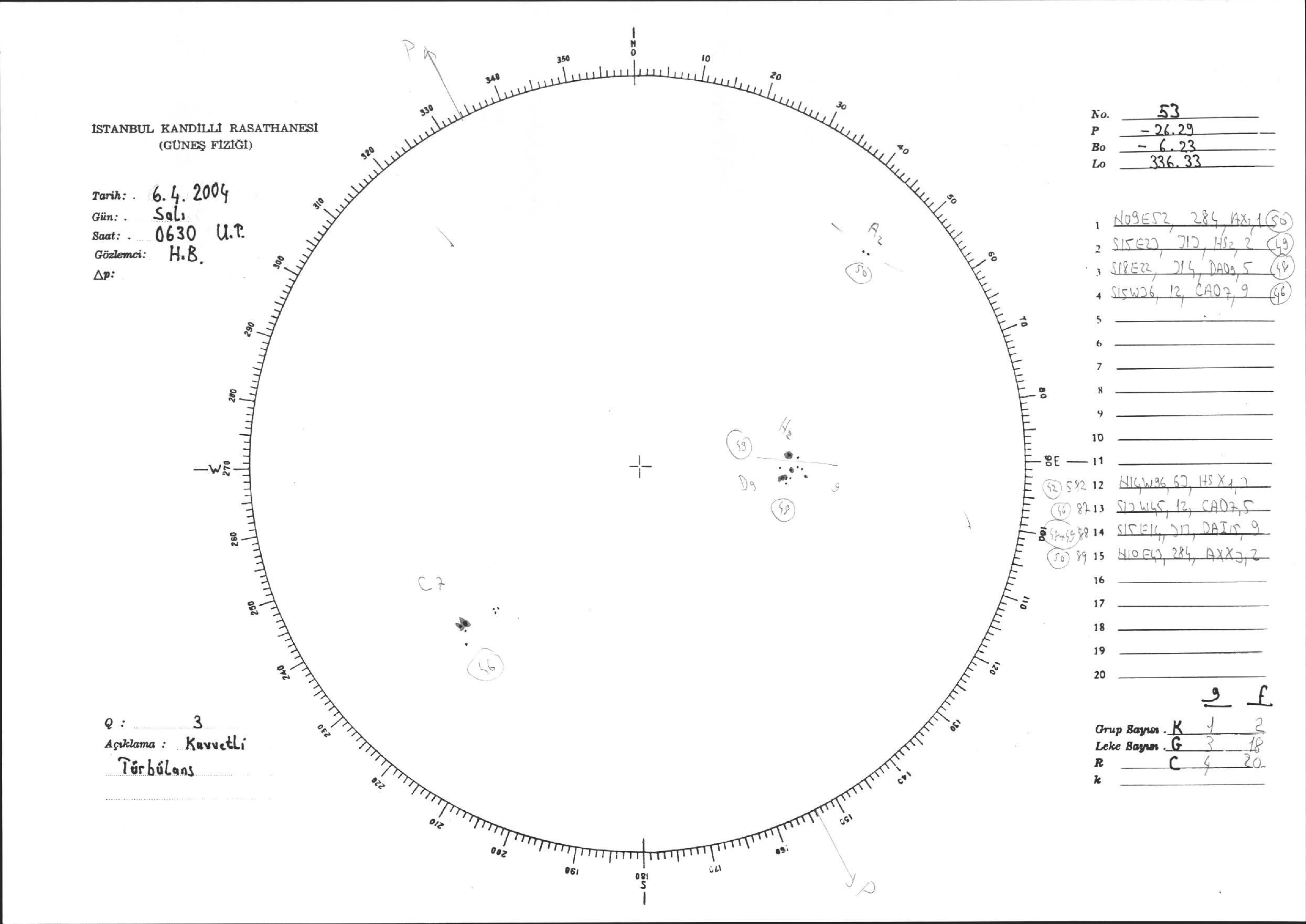 Güneş Lekesi Çizimi - 06.04.2004