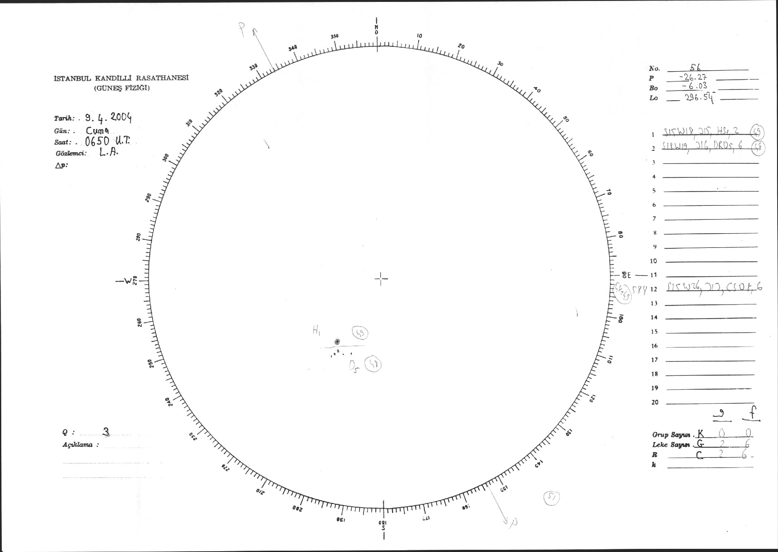 Güneş Lekesi Çizimi - 09.04.2004