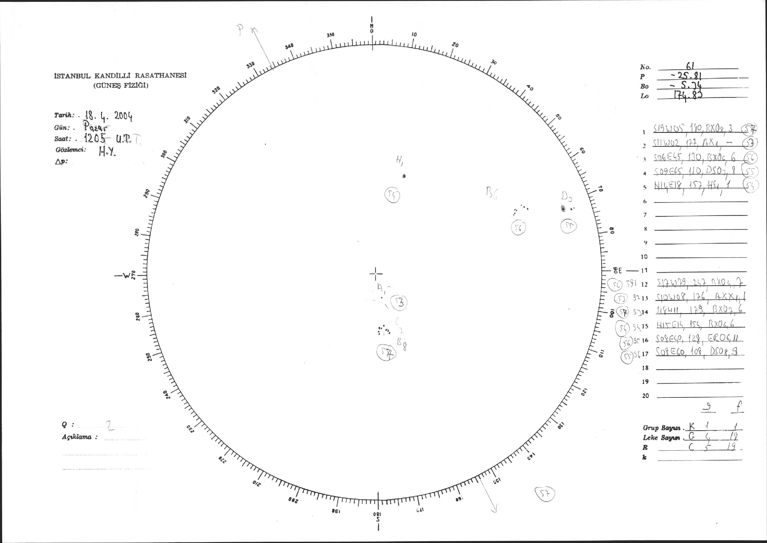Güneş Lekesi Çizimi - 18.04.2004