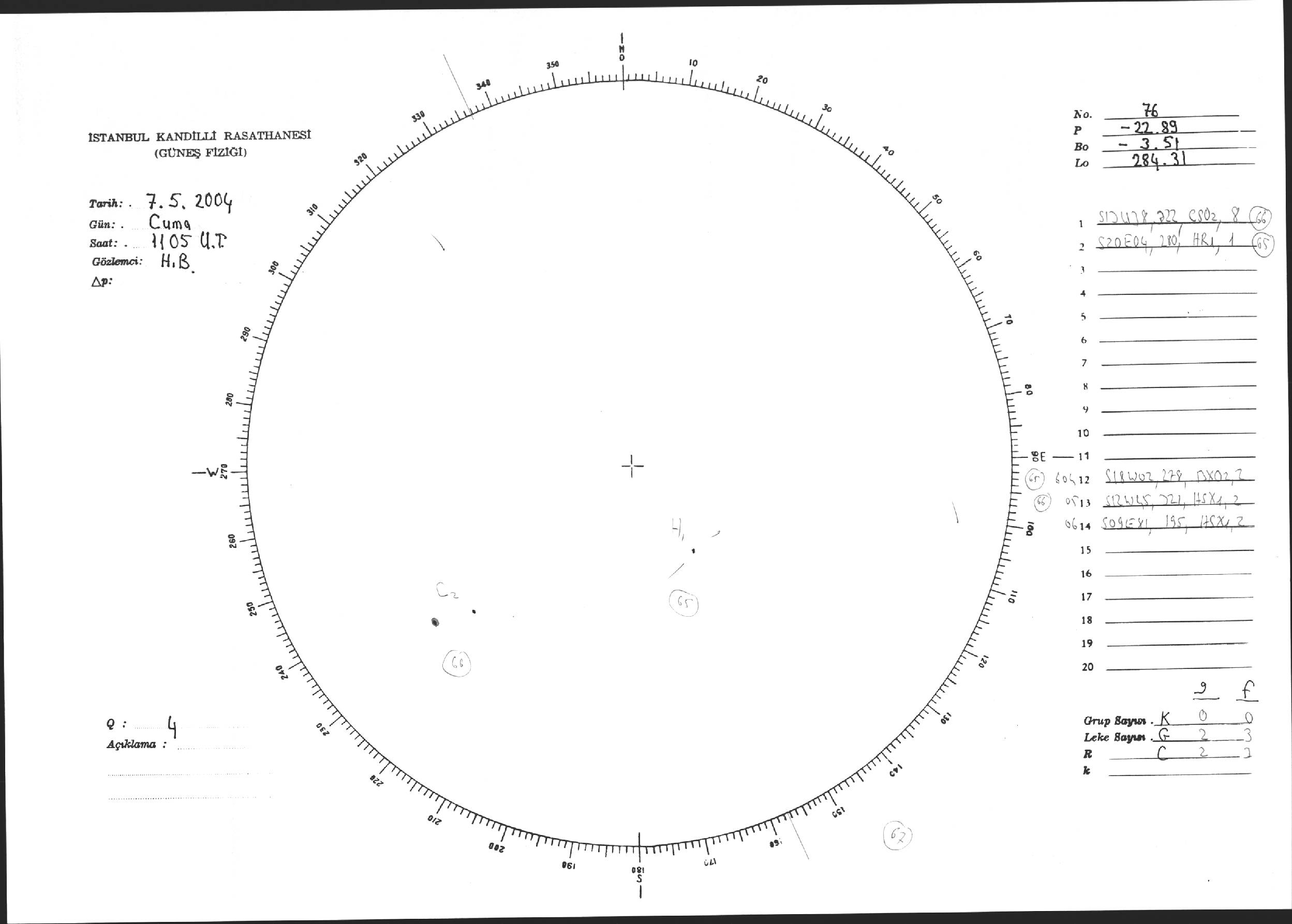 Güneş Lekesi Çizimi - 07.05.2004