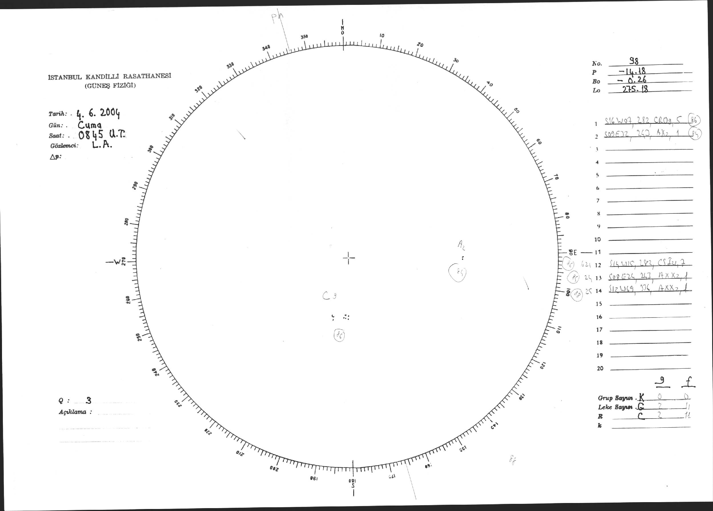 Güneş Lekesi Çizimi - 04.06.2004