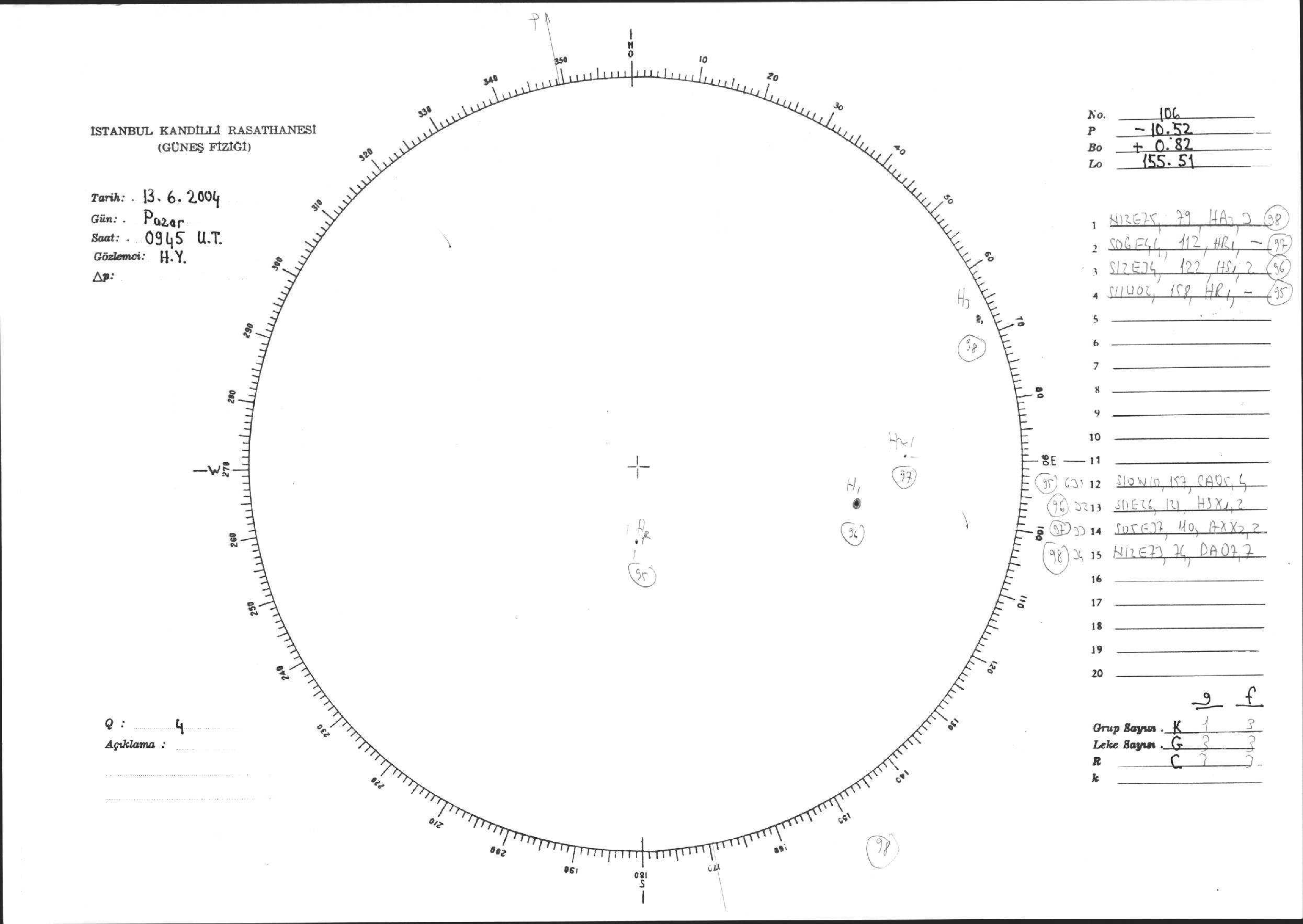 Güneş Lekesi Çizimi - 13.06.2004