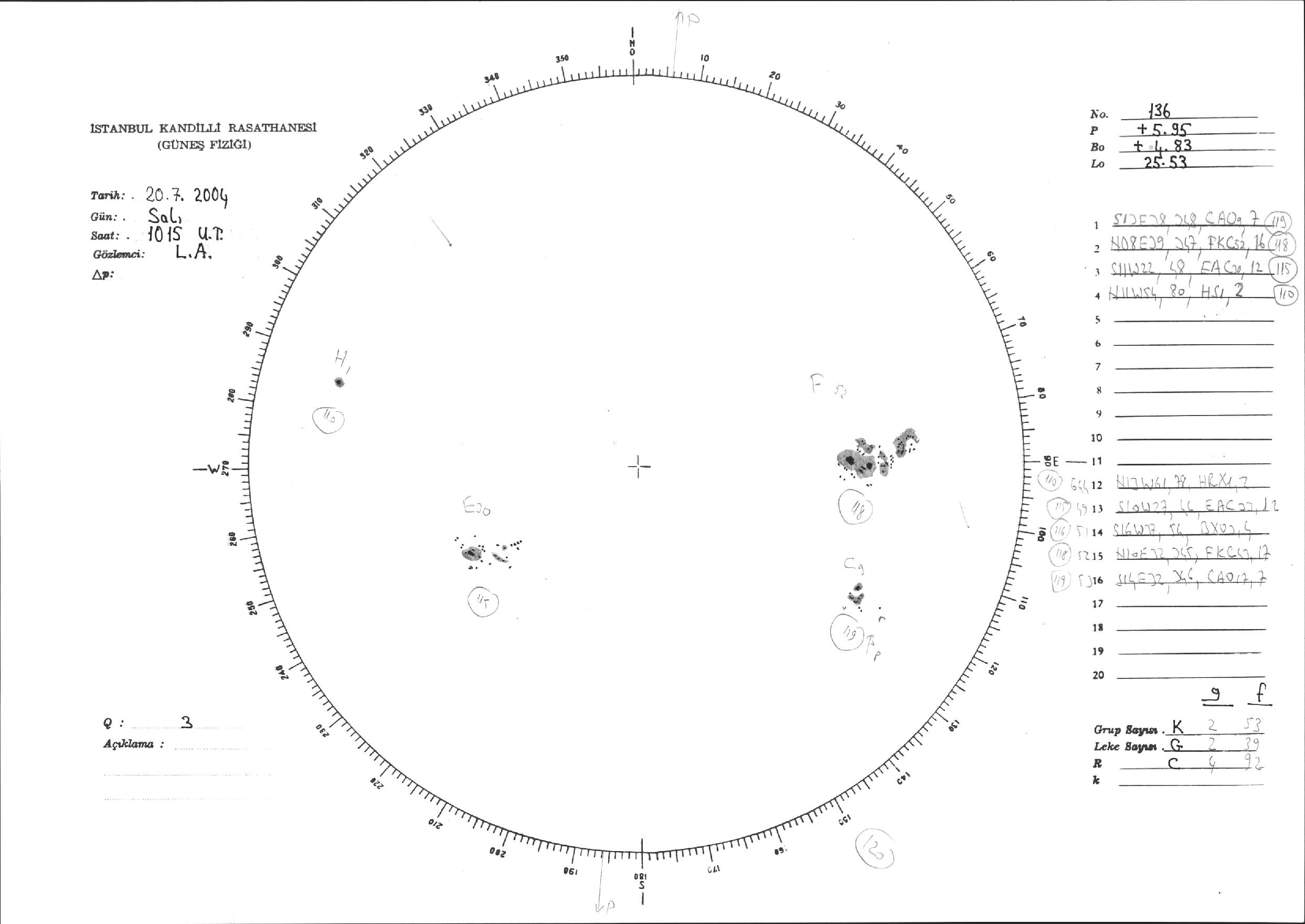 Güneş Lekesi Çizimi - 20.07.2004