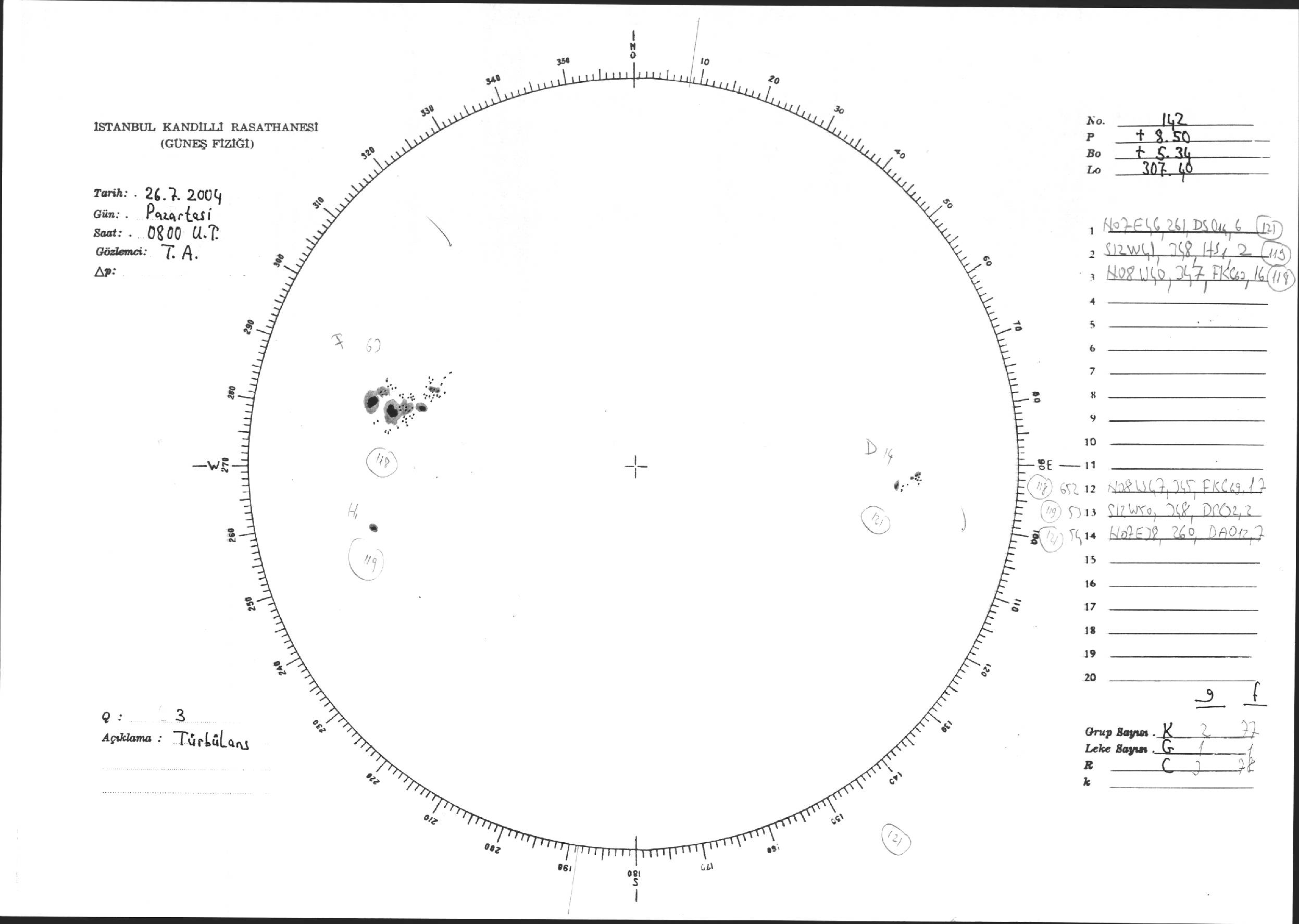 Güneş Lekesi Çizimi - 26.07.2004