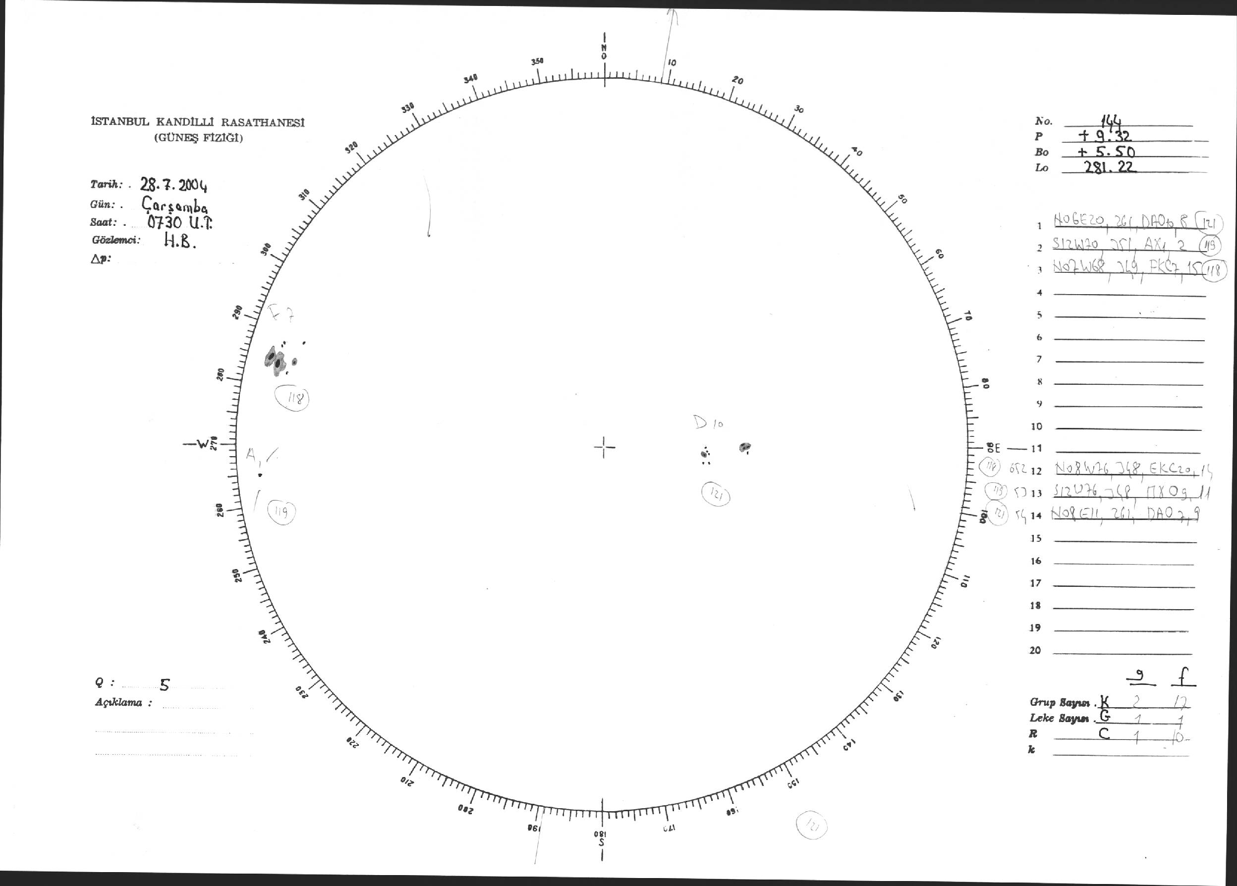Güneş Lekesi Çizimi - 28.07.2004
