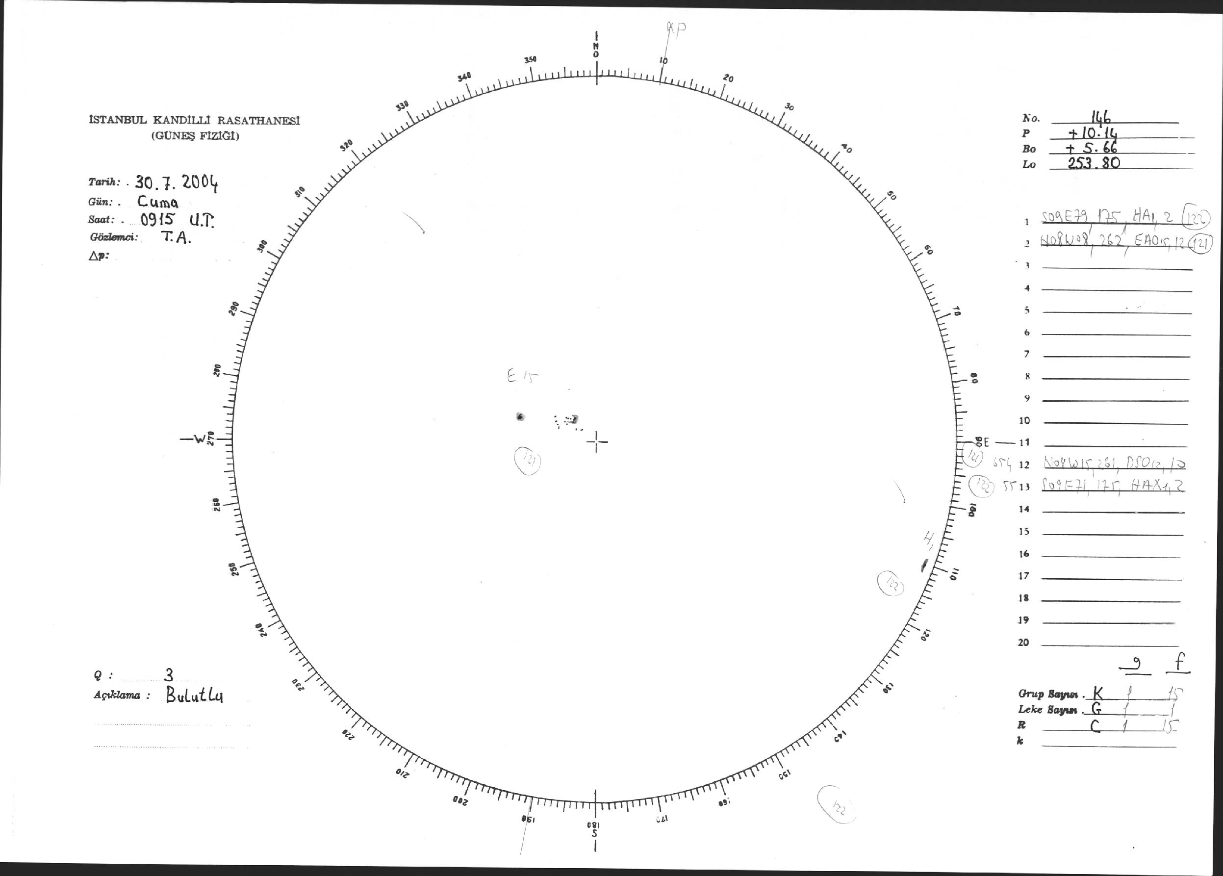 Güneş Lekesi Çizimi - 30.07.2004