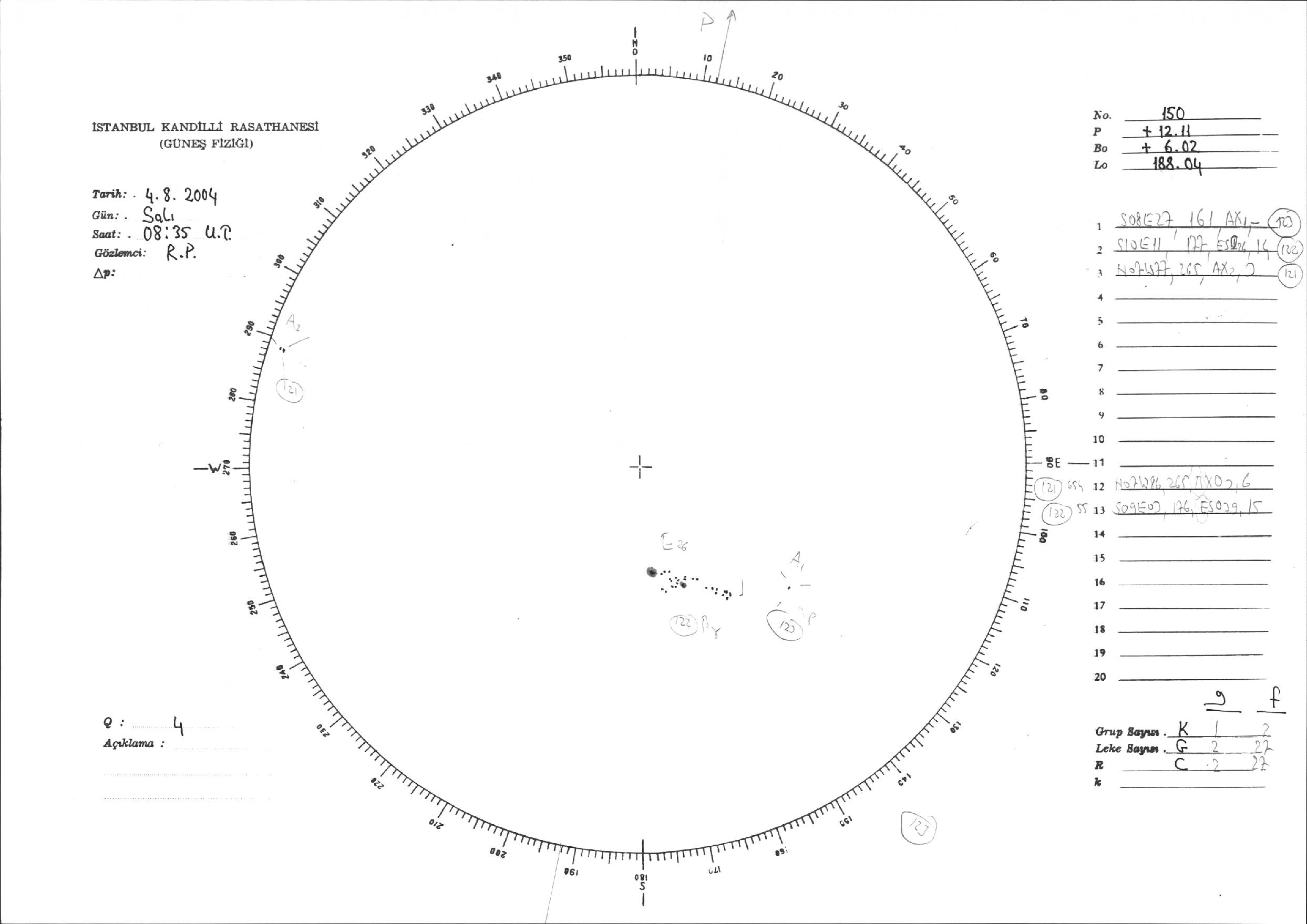 Güneş Lekesi Çizimi - 04.08.2004