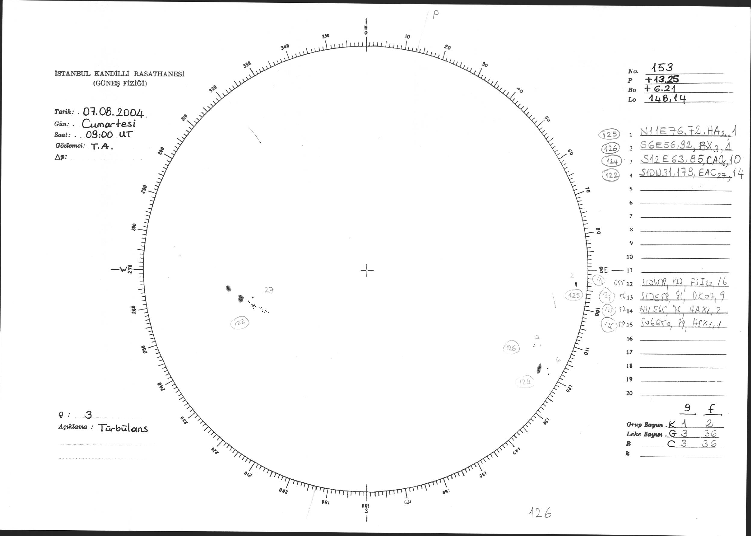 Güneş Lekesi Çizimi - 07.08.2004