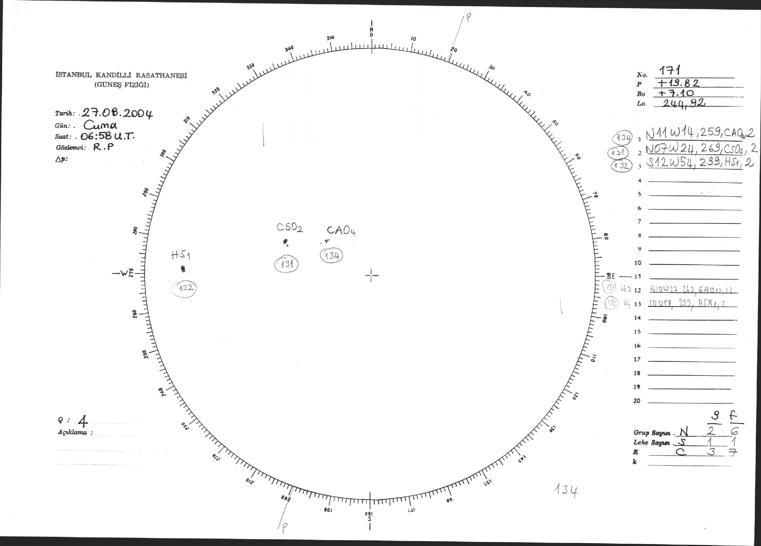 Güneş Lekesi Çizimi - 27.08.2004