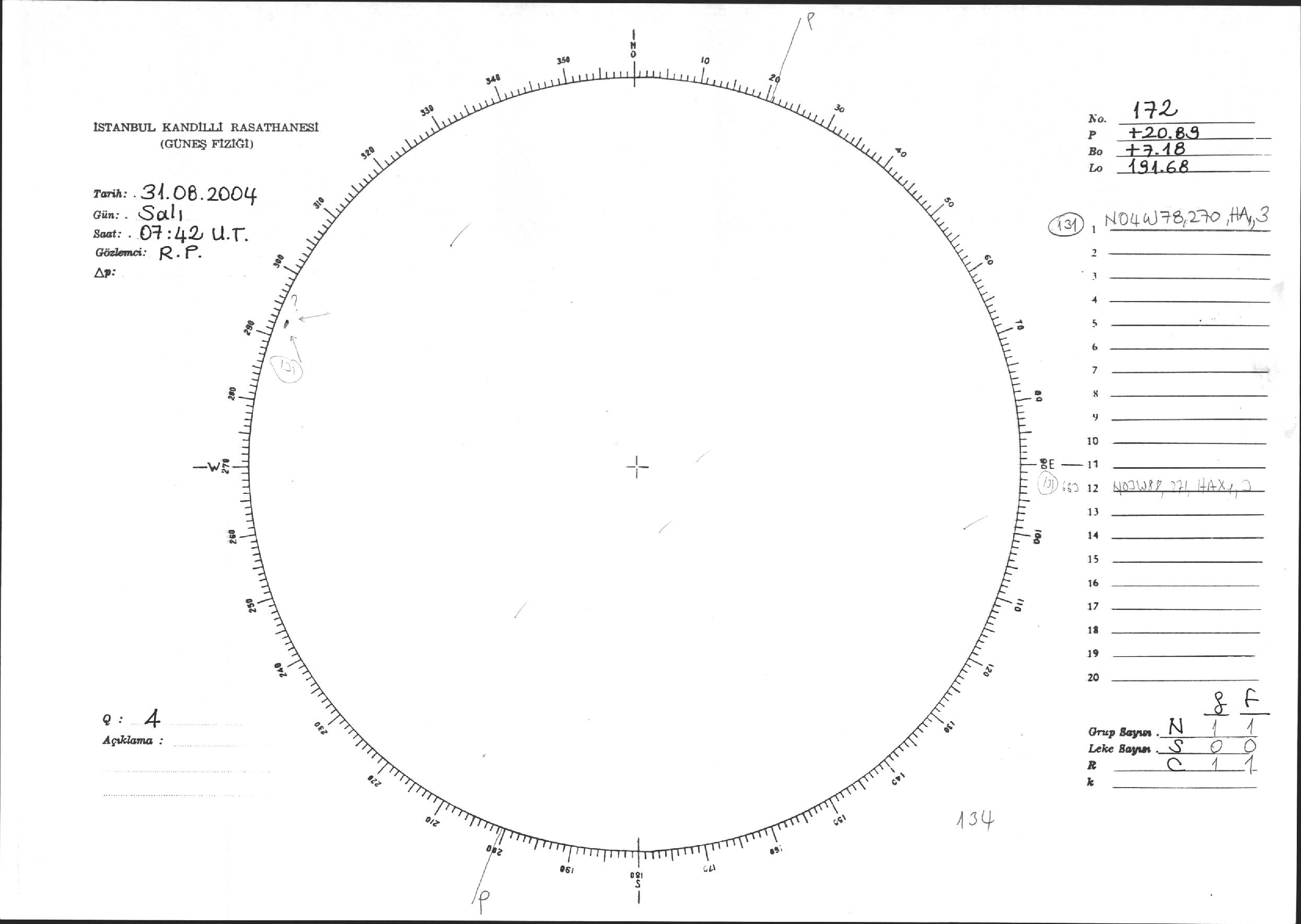 Güneş Lekesi Çizimi - 31.08.2004