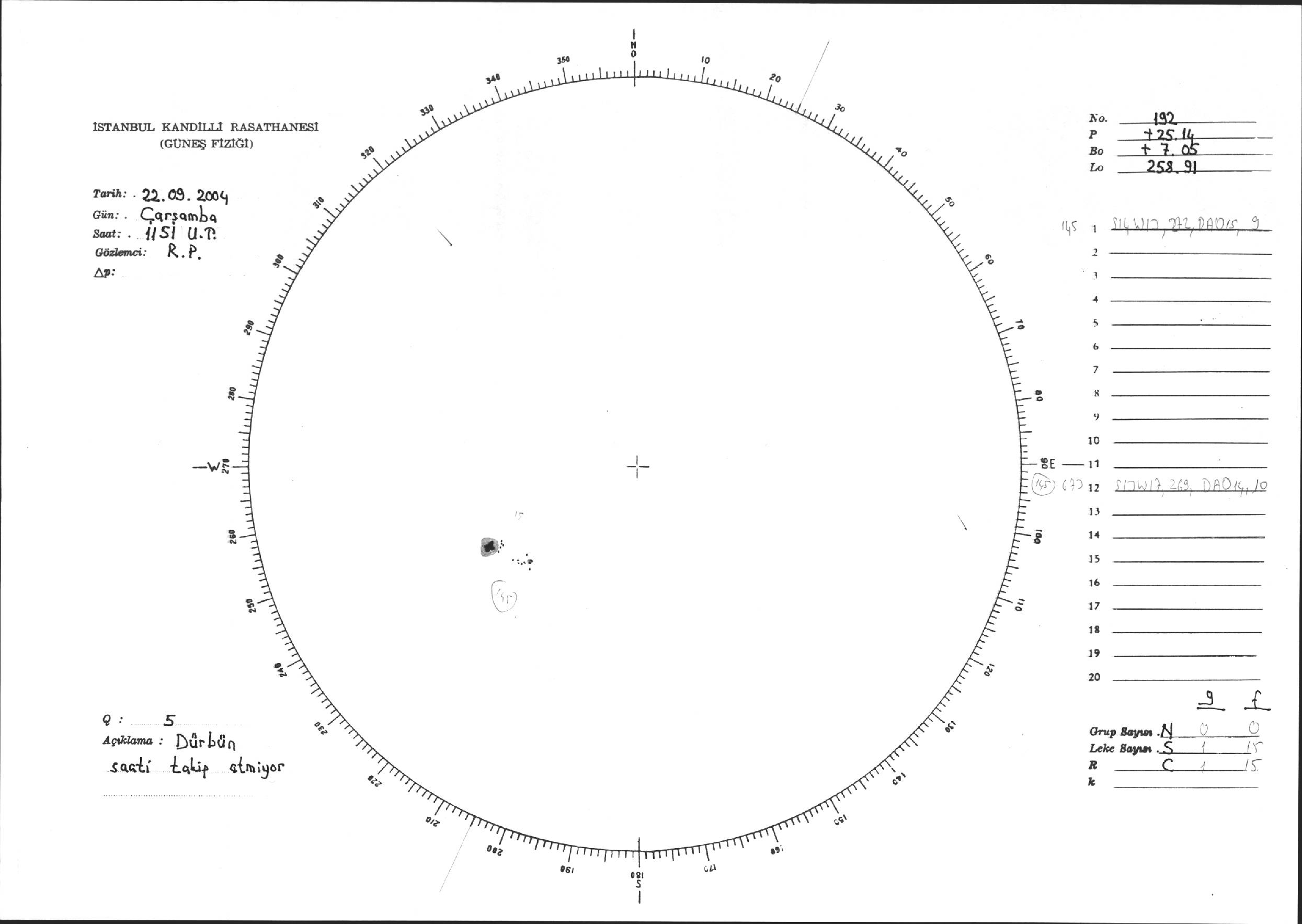 Güneş Lekesi Çizimi - 22.09.2004