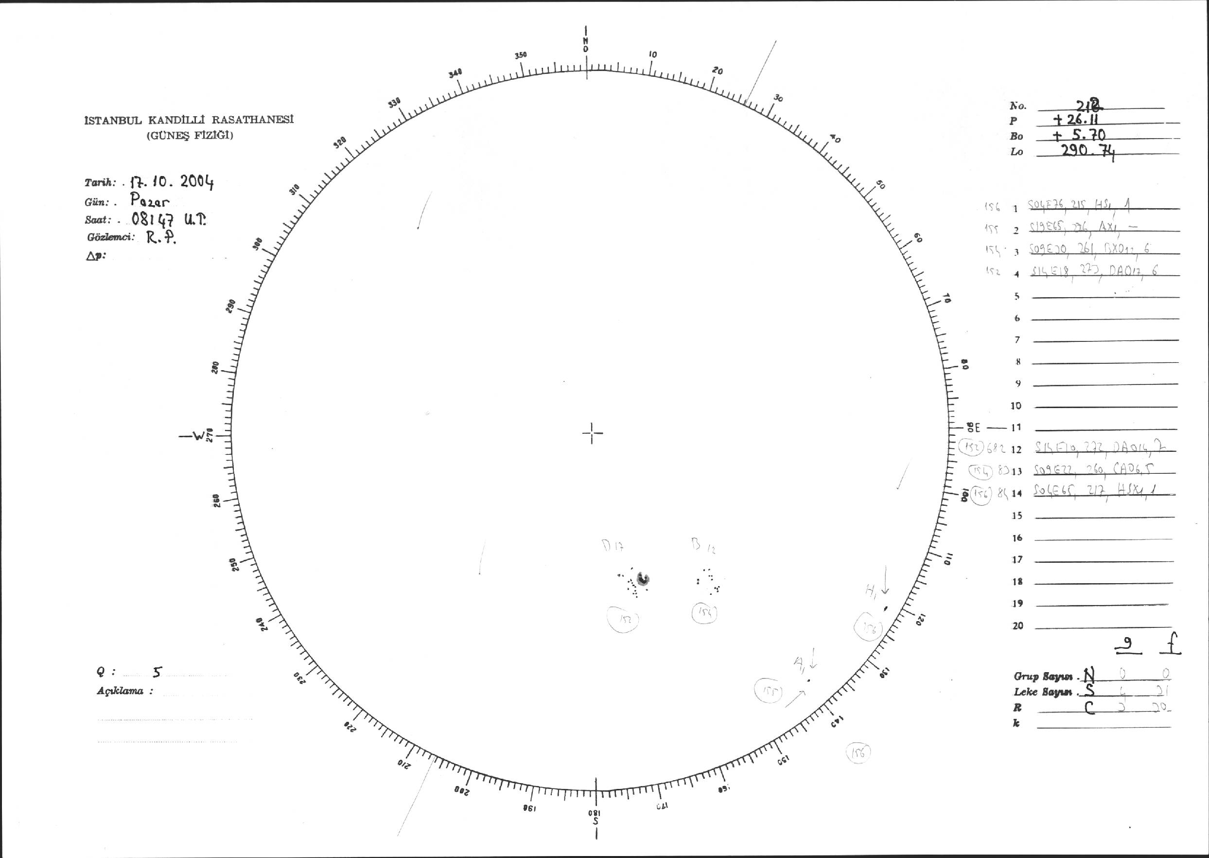 Güneş Lekesi Çizimi - 17.10.2004