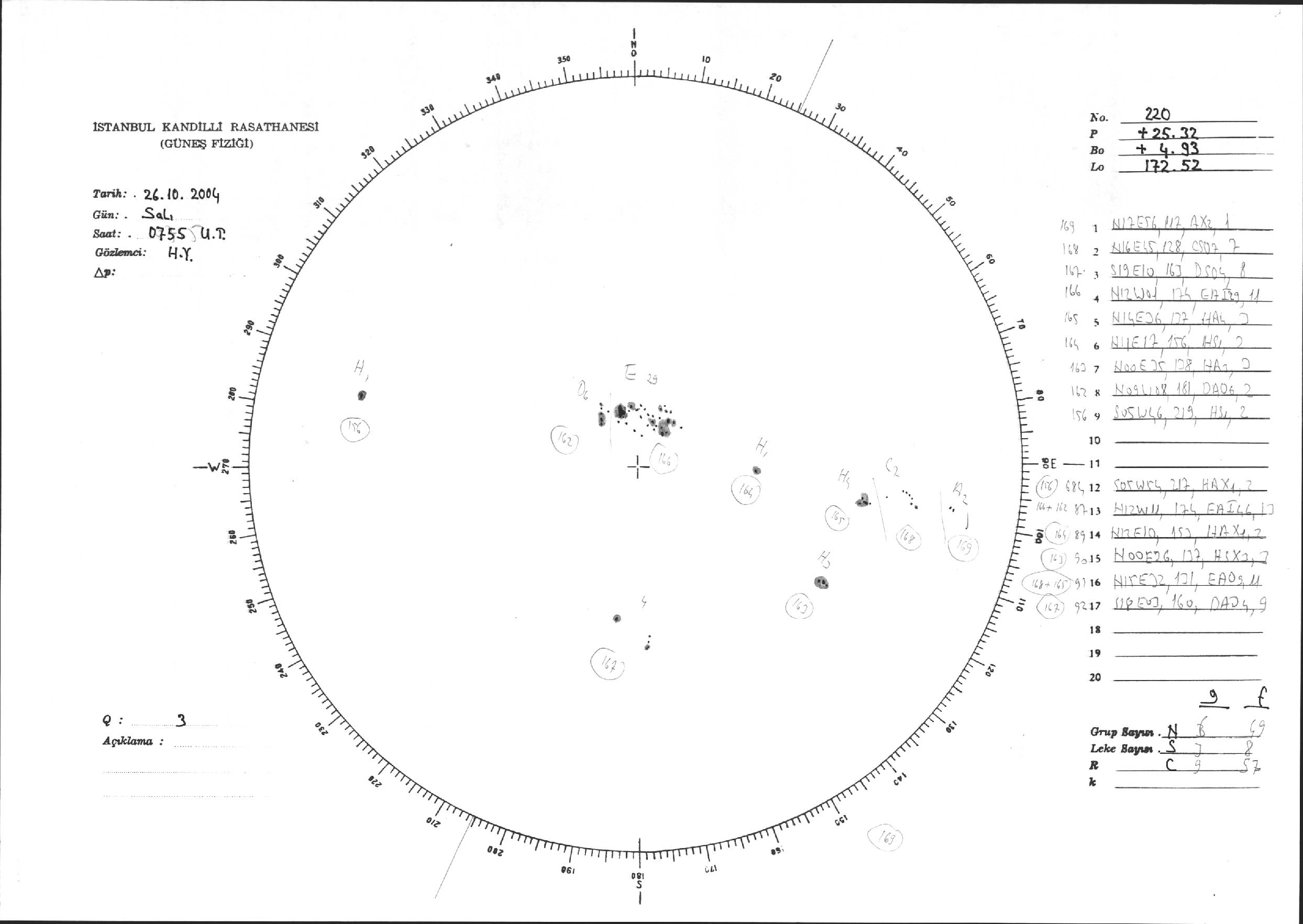 Güneş Lekesi Çizimi - 26.10.2004
