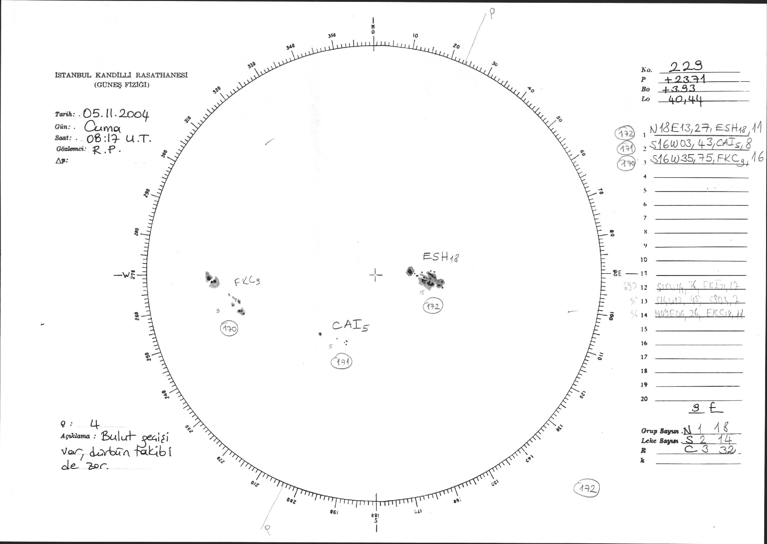 Güneş Lekesi Çizimi - 05.11.2004