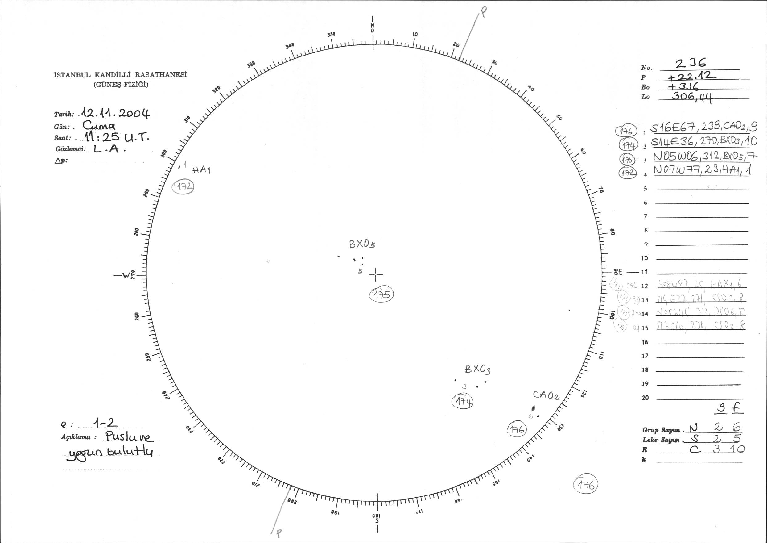 Güneş Lekesi Çizimi - 12.11.2004