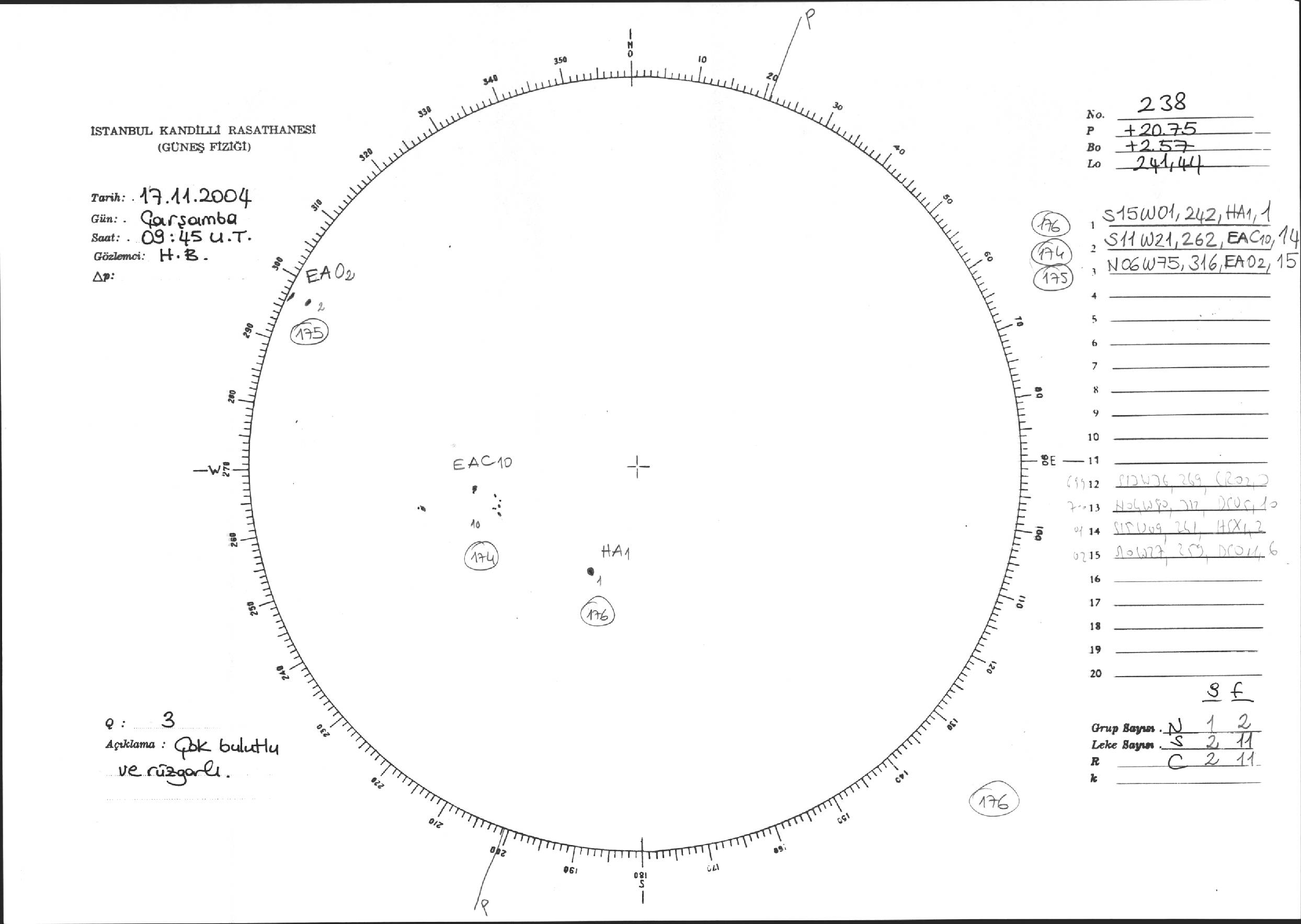 Güneş Lekesi Çizimi - 17.11.2004